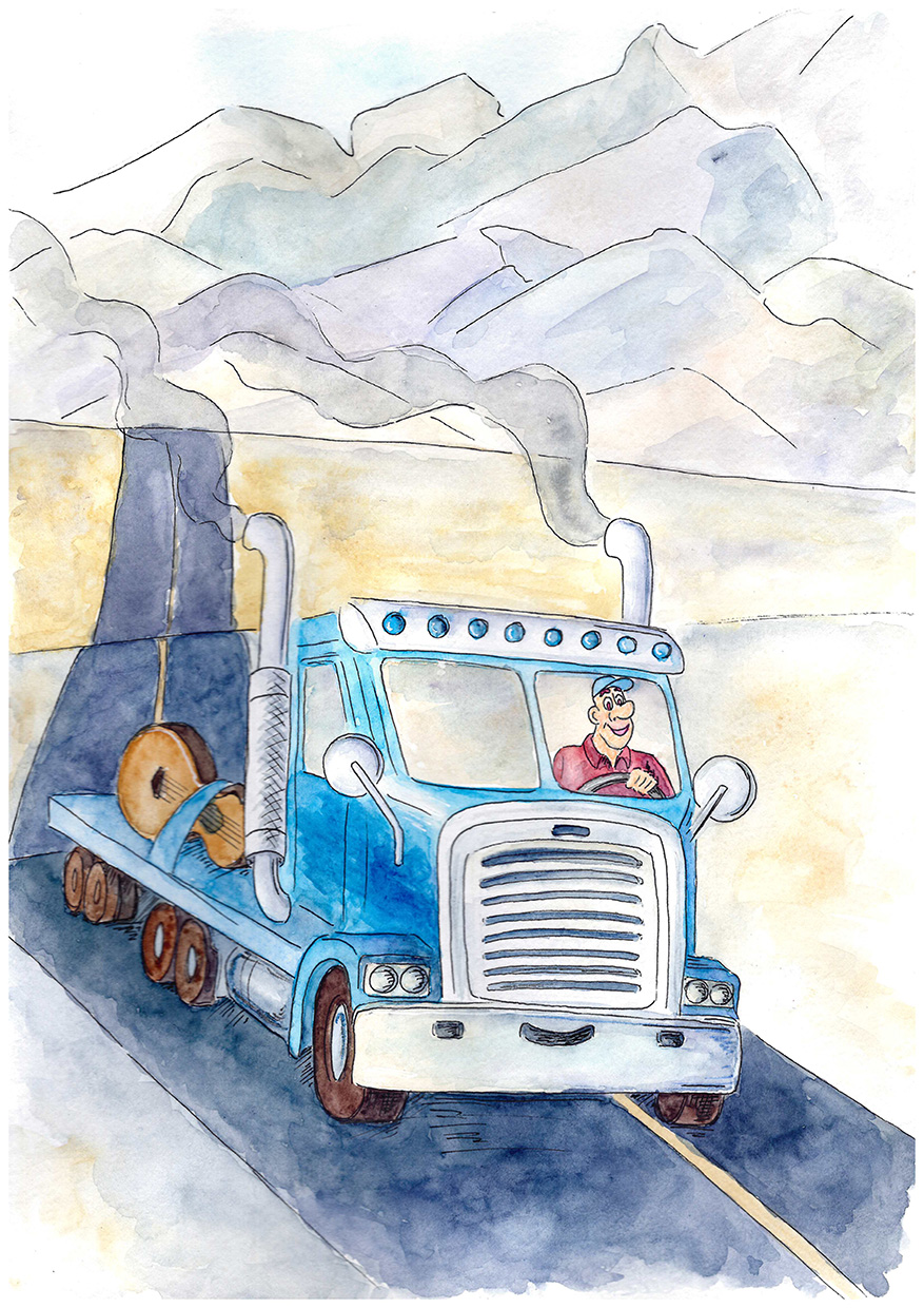 Из серии иллюстраций для книги о большом грузовике Ole Mack и его водителе Dusty Bill. Они друзья и вместе перевозят различные грузы по всем штатам.