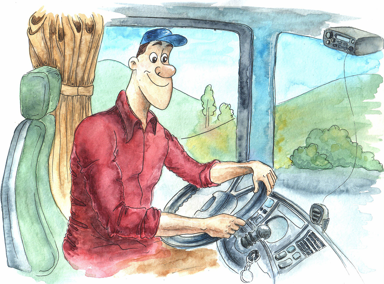 Из серии иллюстраций для книги о большом грузовике Ole Mack и его водителе Dusty Bill. Они друзья и вместе перевозят различные грузы по всем штатам.