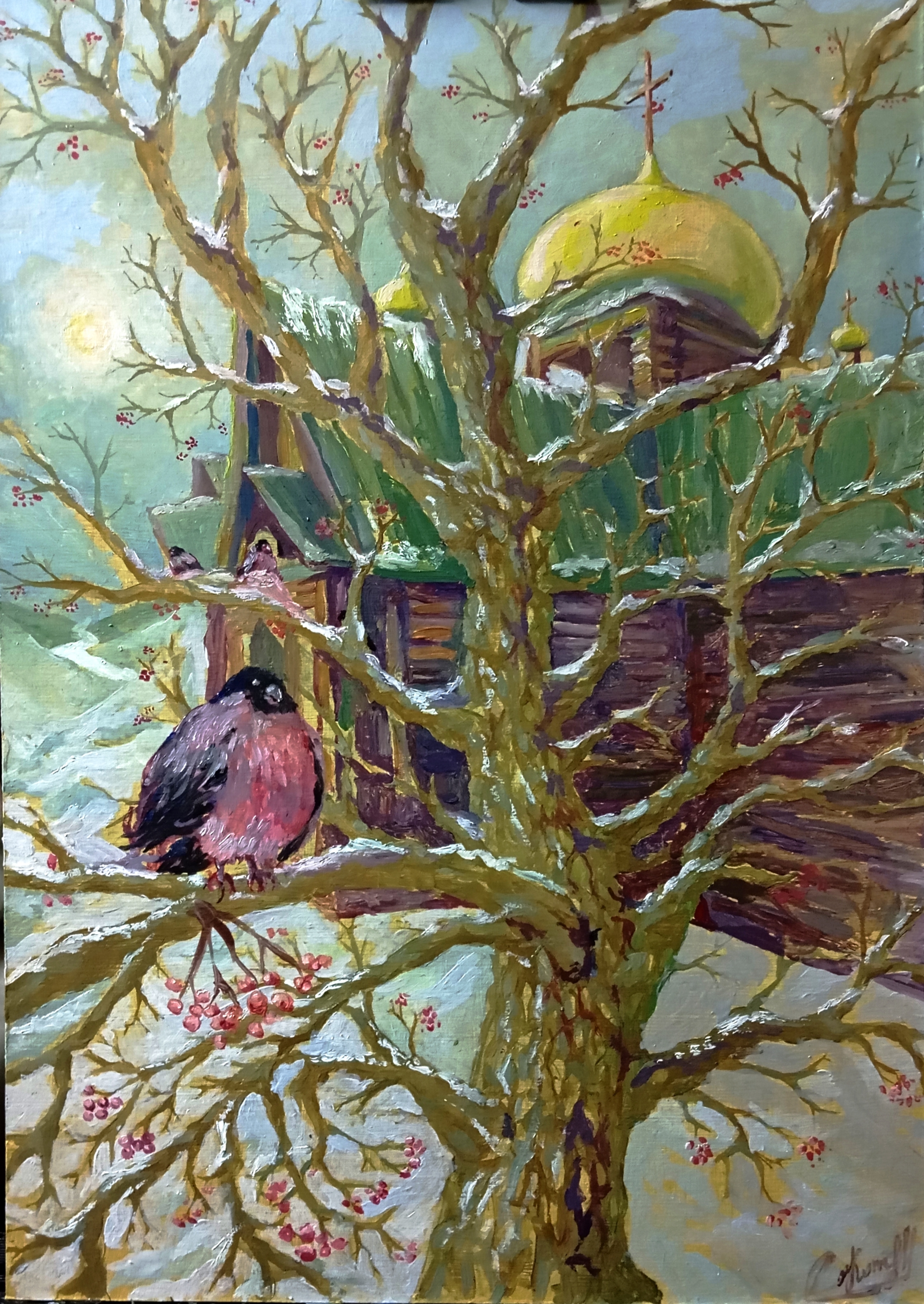 Всем привет, поздравляю всех с новым годом и Рождеством! На тему Рождества выполнил такую вот работу, с удовольствием сидел накидывал мазками)