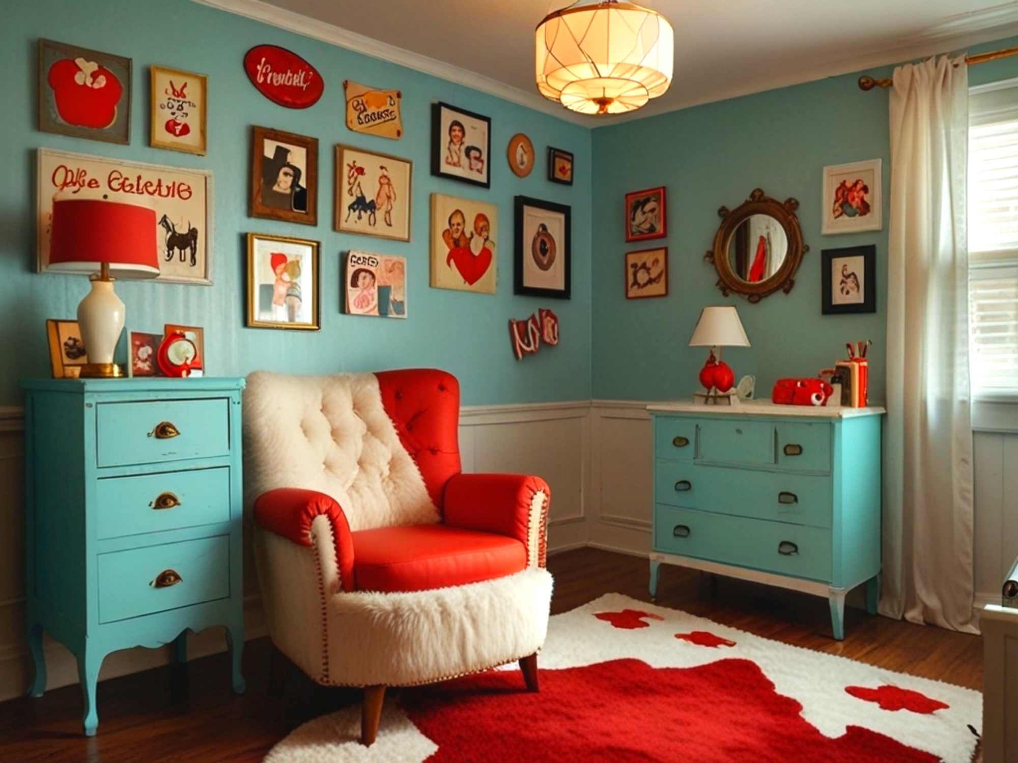 AIИнтерьер комнаты в стиле пин-ап