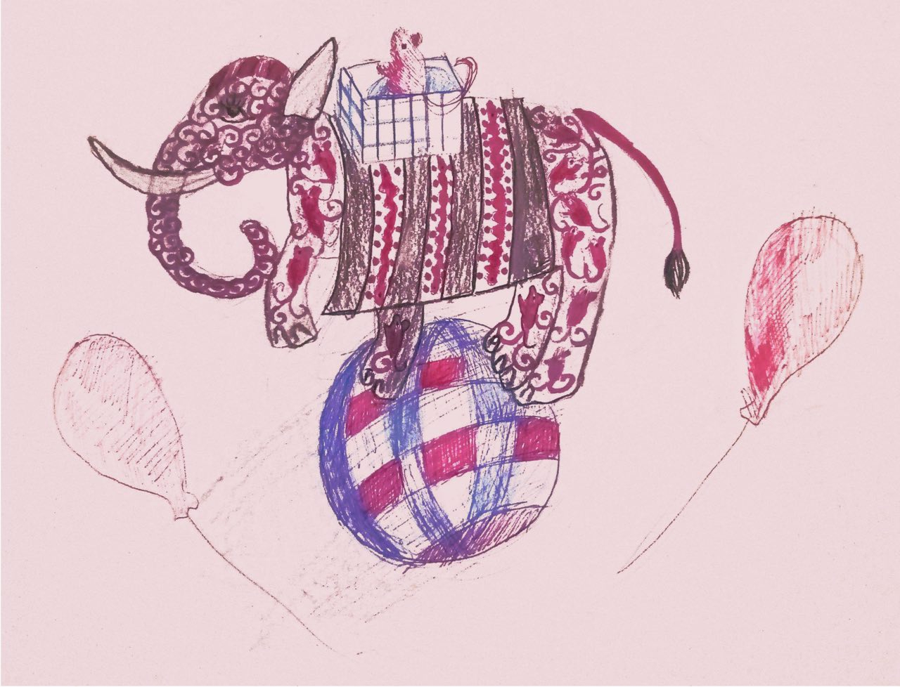 Маленький слонёнок решил попробовать новый трюк на мячике .The little elephant decided to try a new trick on the ball.