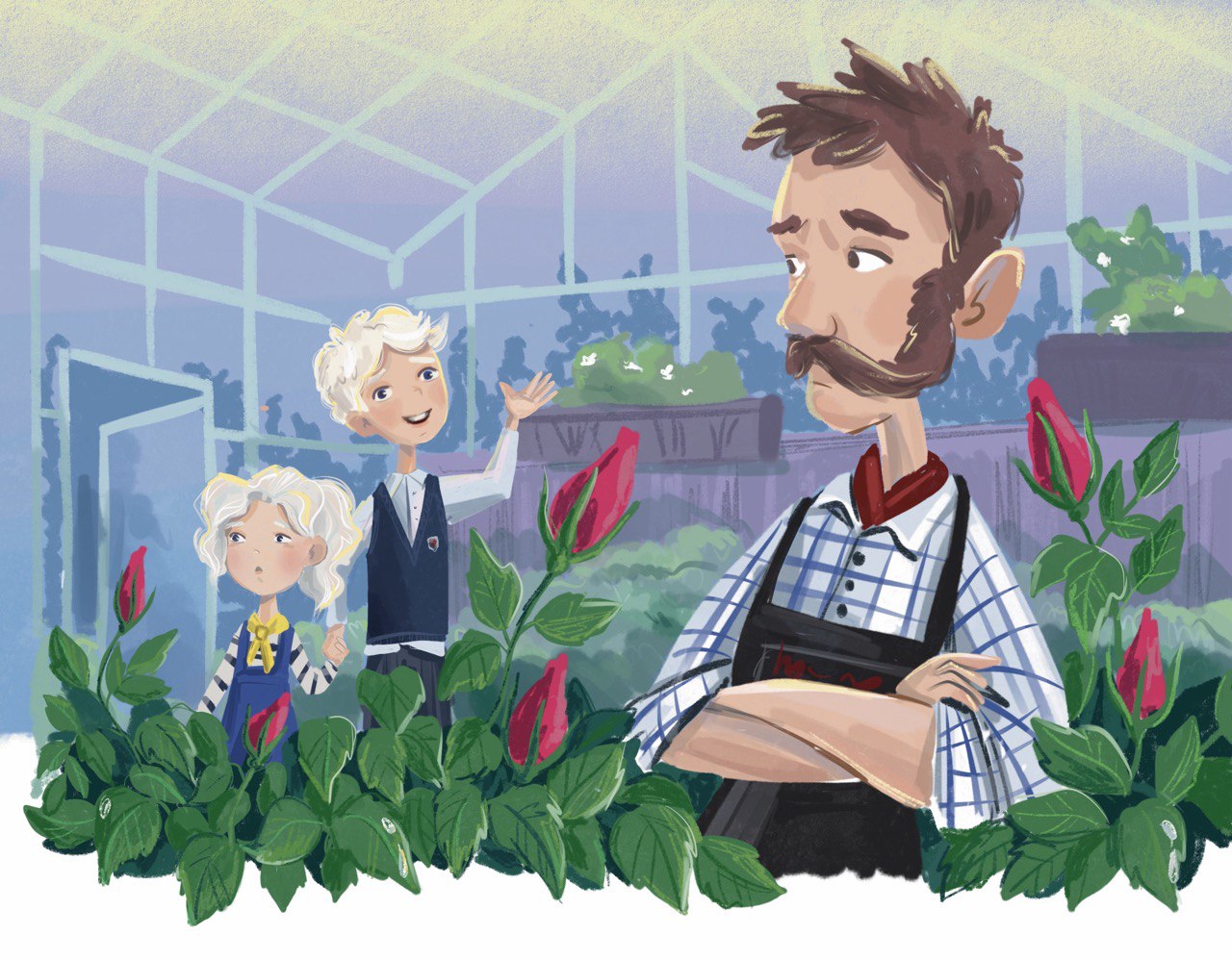 Иллюстрация к истории про детей и цветы