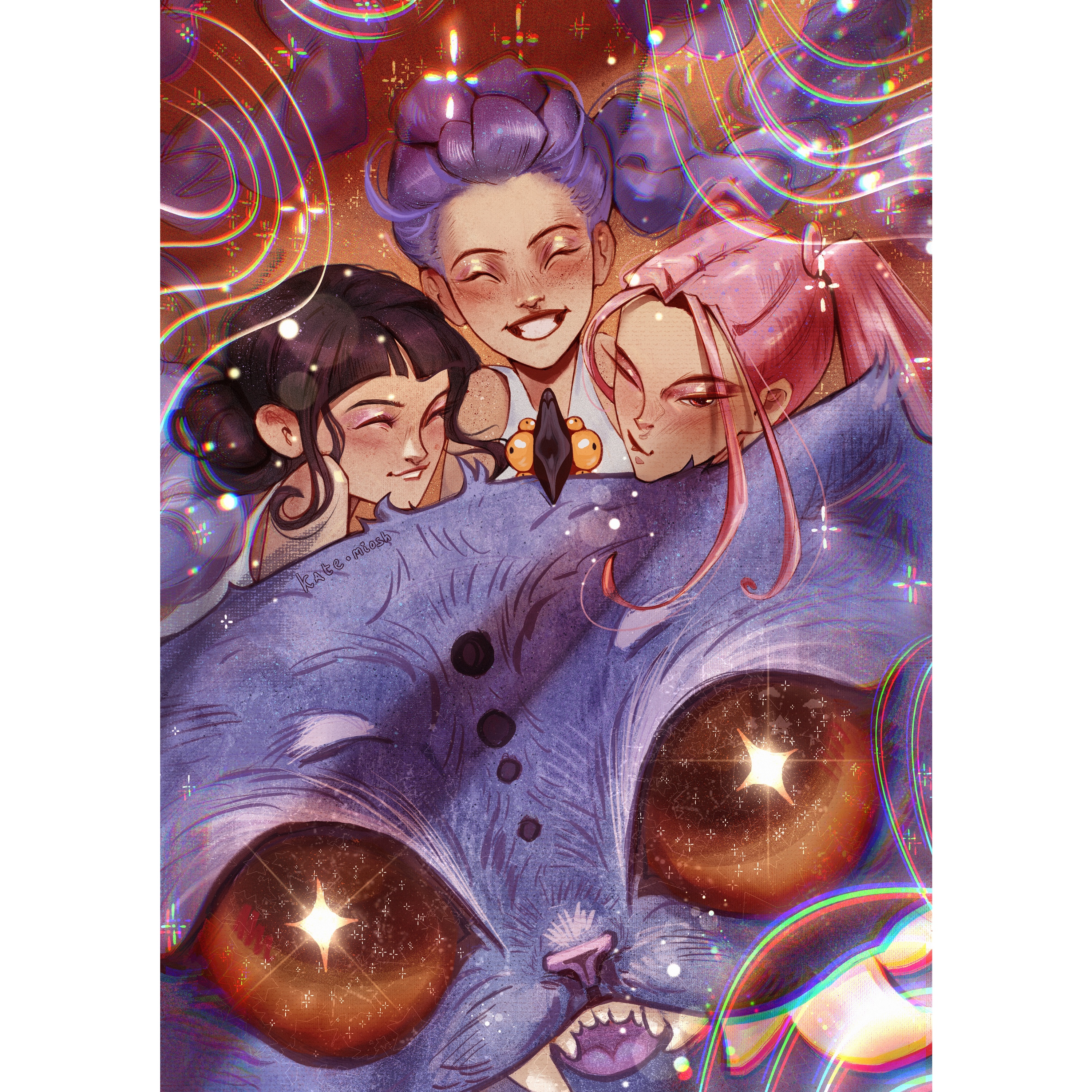 Разработка иллюстрации для серии открыток по теме «Кейпоп-охотницы на демонов».