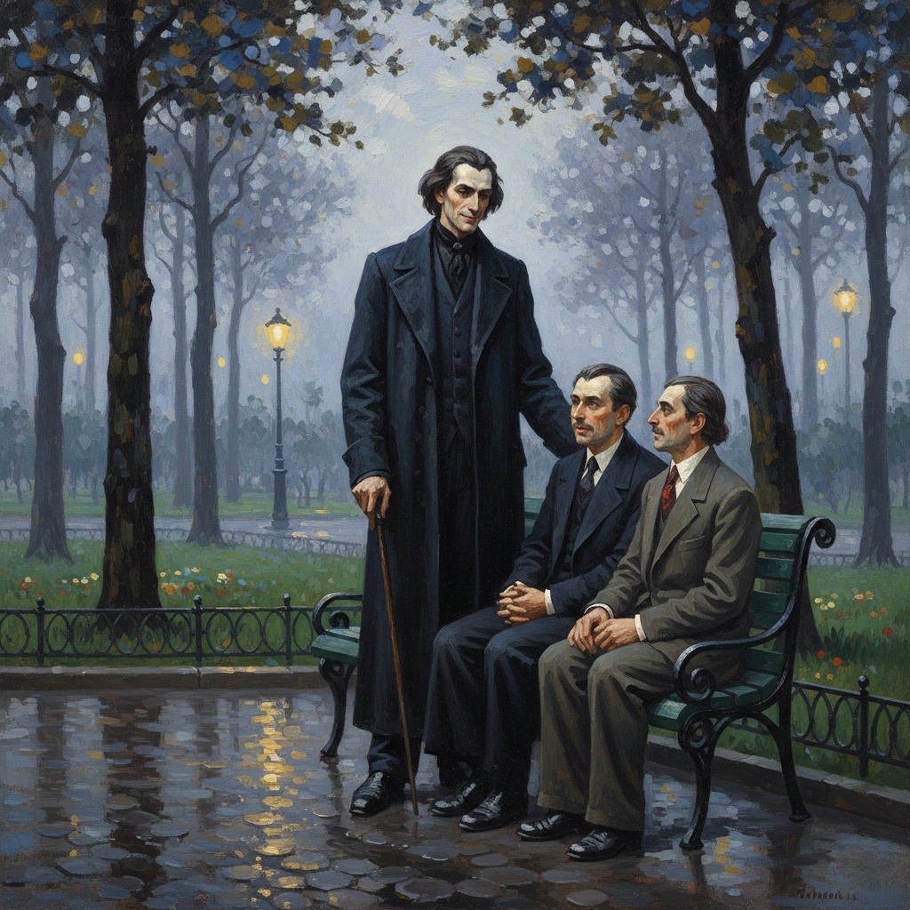 Воланд, Берлиоз и Бездомный на аллее