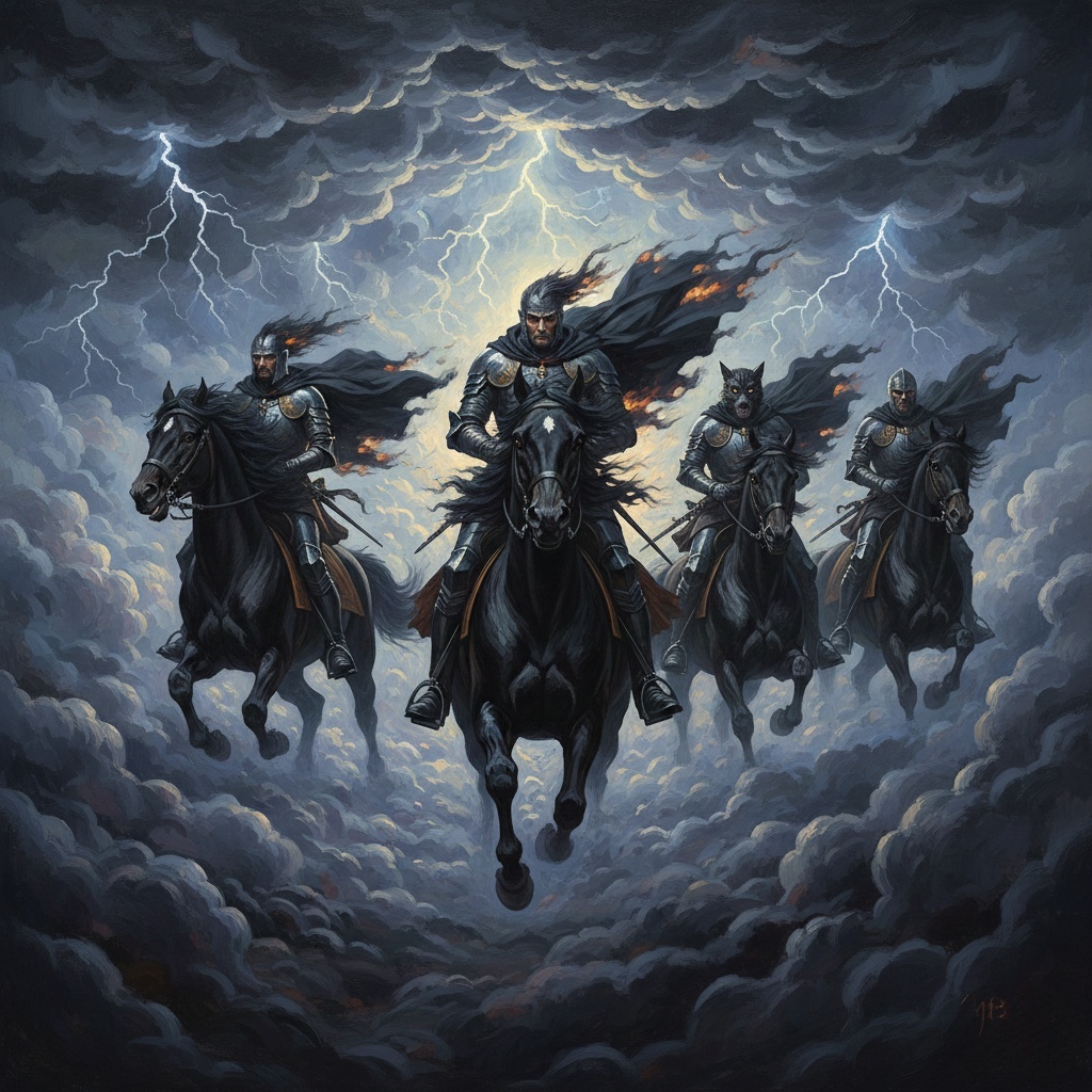 Воланд со свитой скачут по грозовым облакам