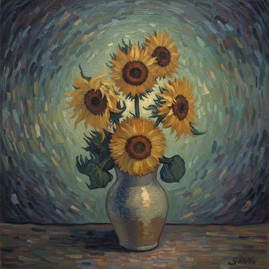 Свет внутри. Картина в стиле Ван Гога. Подсолнухи
