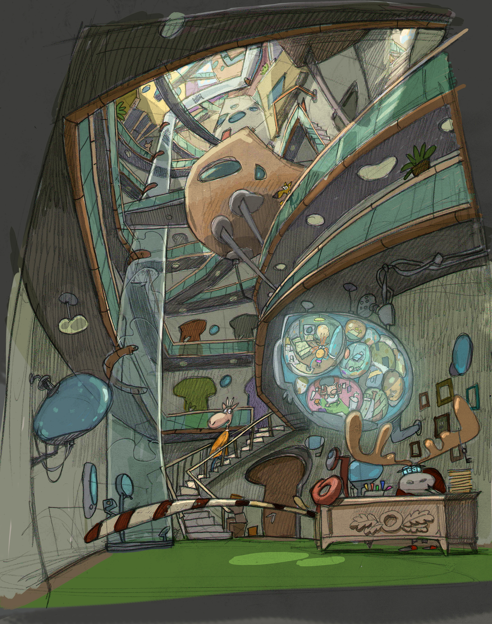концепт к 2д сериалу Джинжи. вход с вахтером в жилой дом с квартирками сдающимися в аренду.