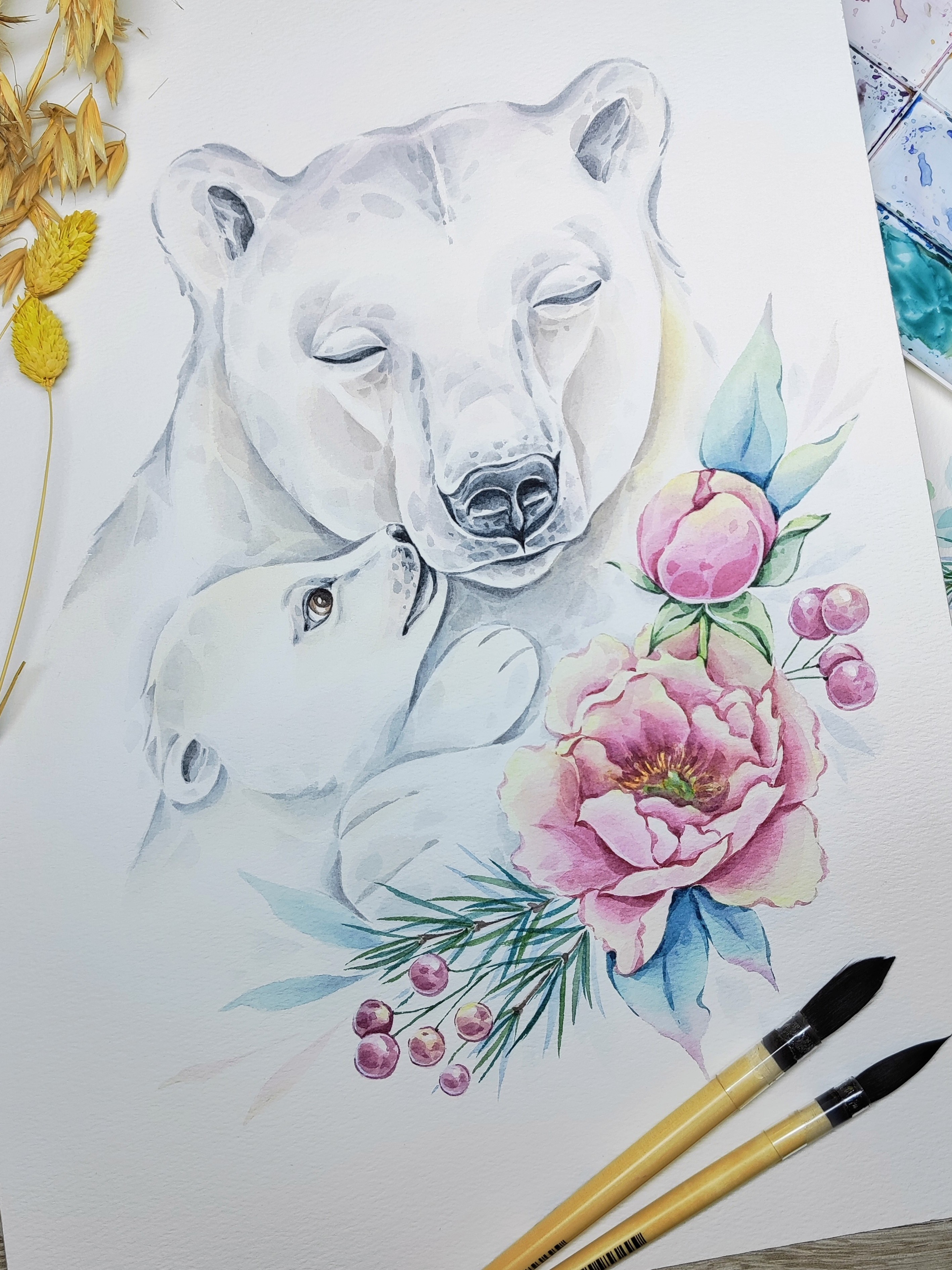 У меня нет детей, только племянник, но надеюсь смогла передать ту любовь и нежность, какую испытывает мать к ребёнку и ребёнок к маме. Подросший Умка мне кажется получился игривым, именно эти чувства я вижу у своей сестры с сыном. Надеюсь получилось передать нужное настроение.