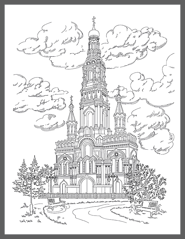 Небольшой заказ серии раскрасок Храмы. Векторная графика, реализм.