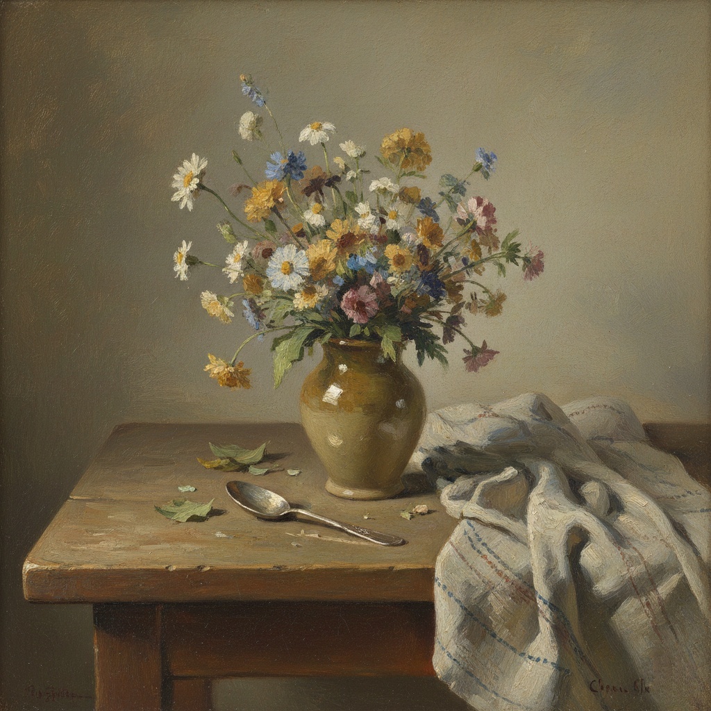 Скромный натюрморт с цветами в стиле Жана-Батиста-Симеона Шардена