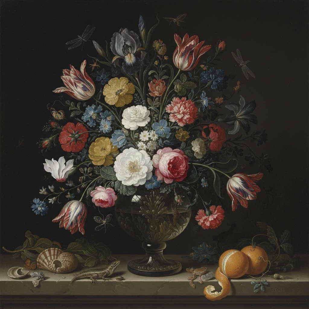 Цветочный натюрморт в стиле Амброзиуса Босхарта Старшего