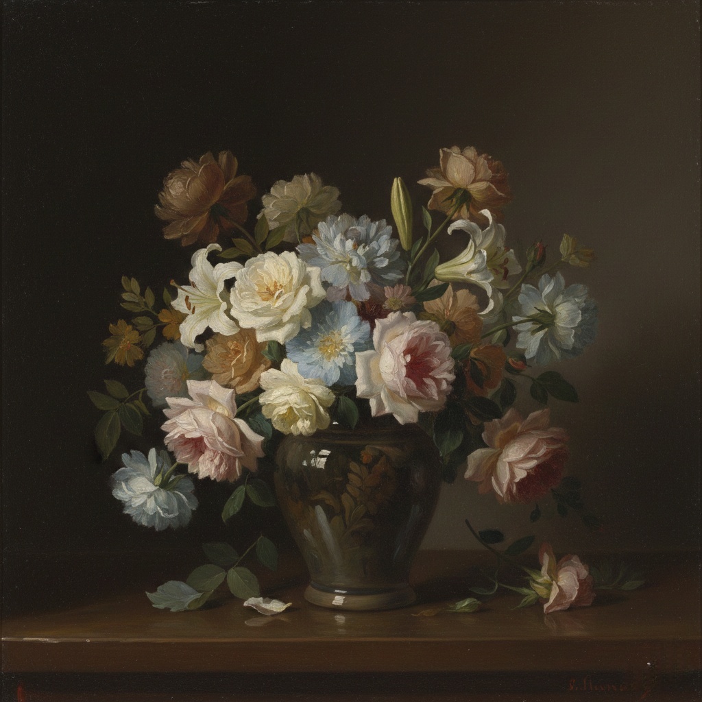 Натюрморт с цветами в стиле Анри Фантен-Латура