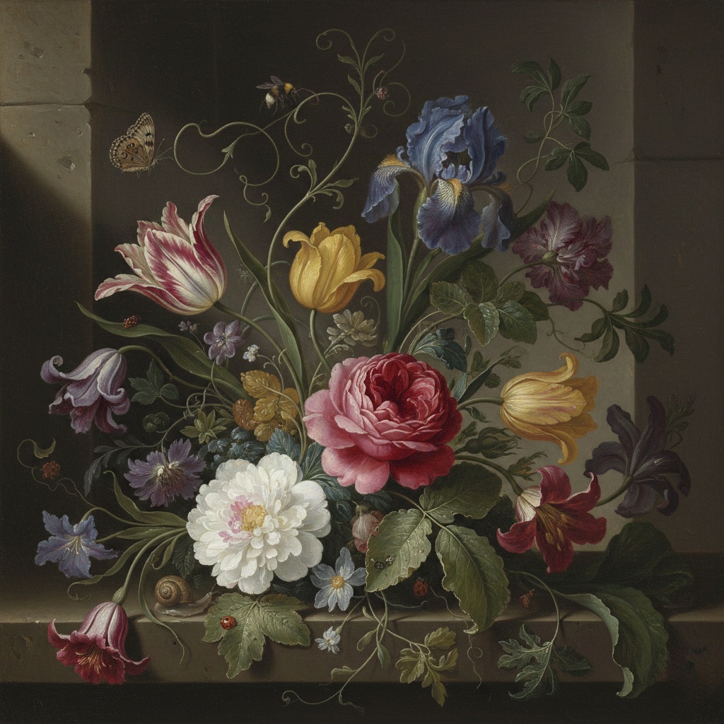 Цветочный натюрморт в стиле Рахель Рёйш,