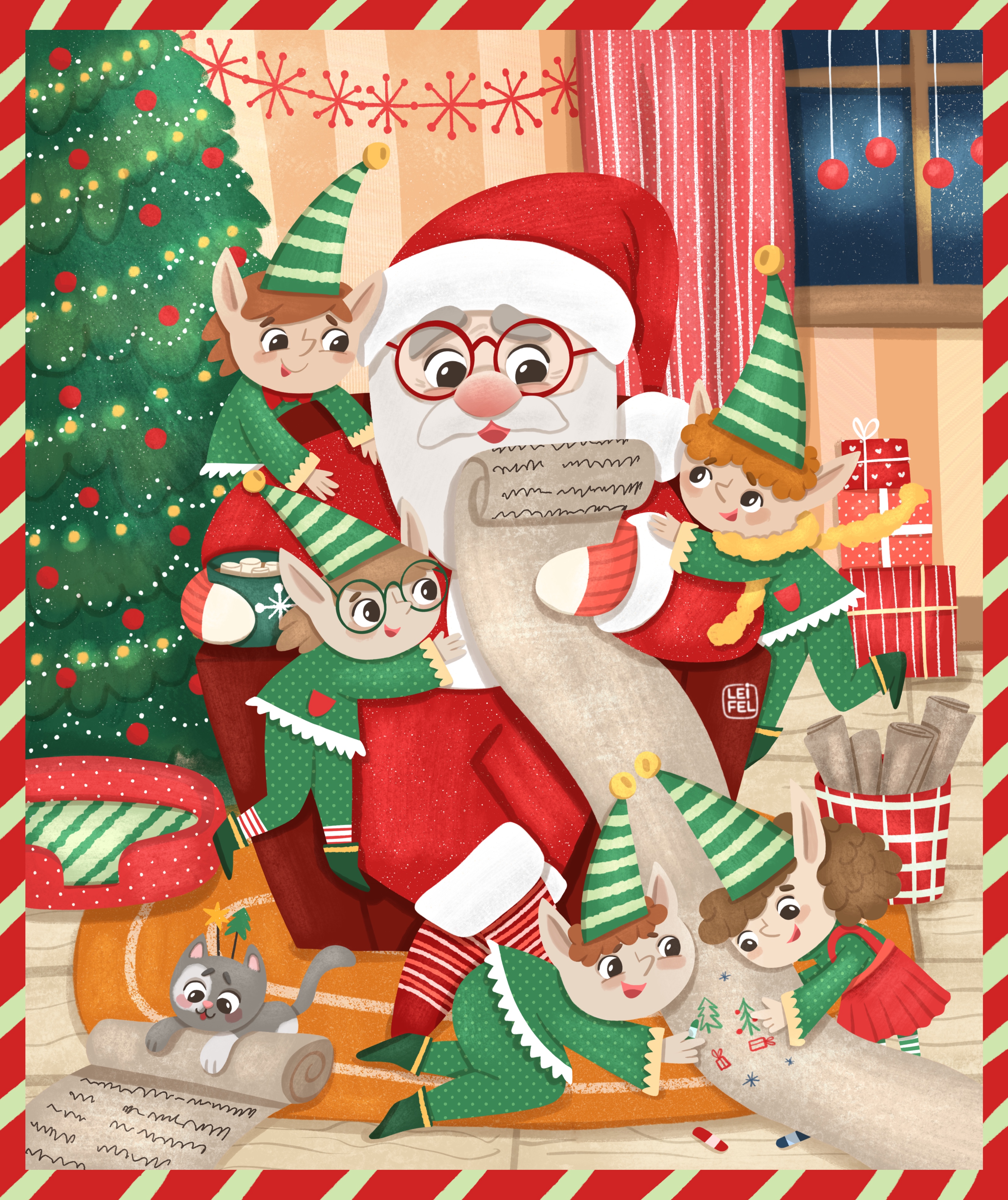 Иллюстрация Санта и эльфы