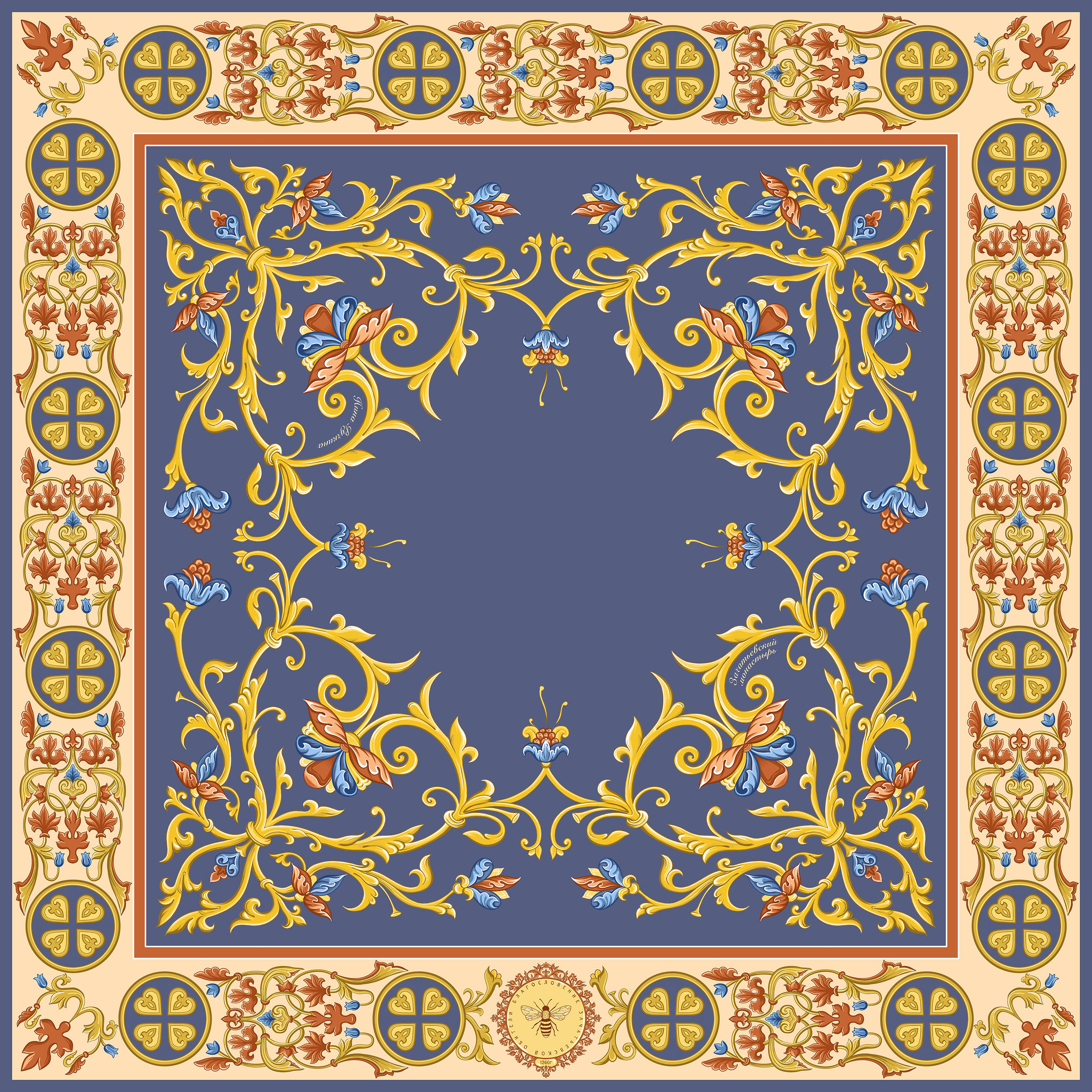 Иллюстрация для бренда «Русские в моде» платок посвящён изображению Собора Рождества Пресвятой Богородицы Зачатьевского монастыря🕊️выполненного в традиционном русском «узорочье»