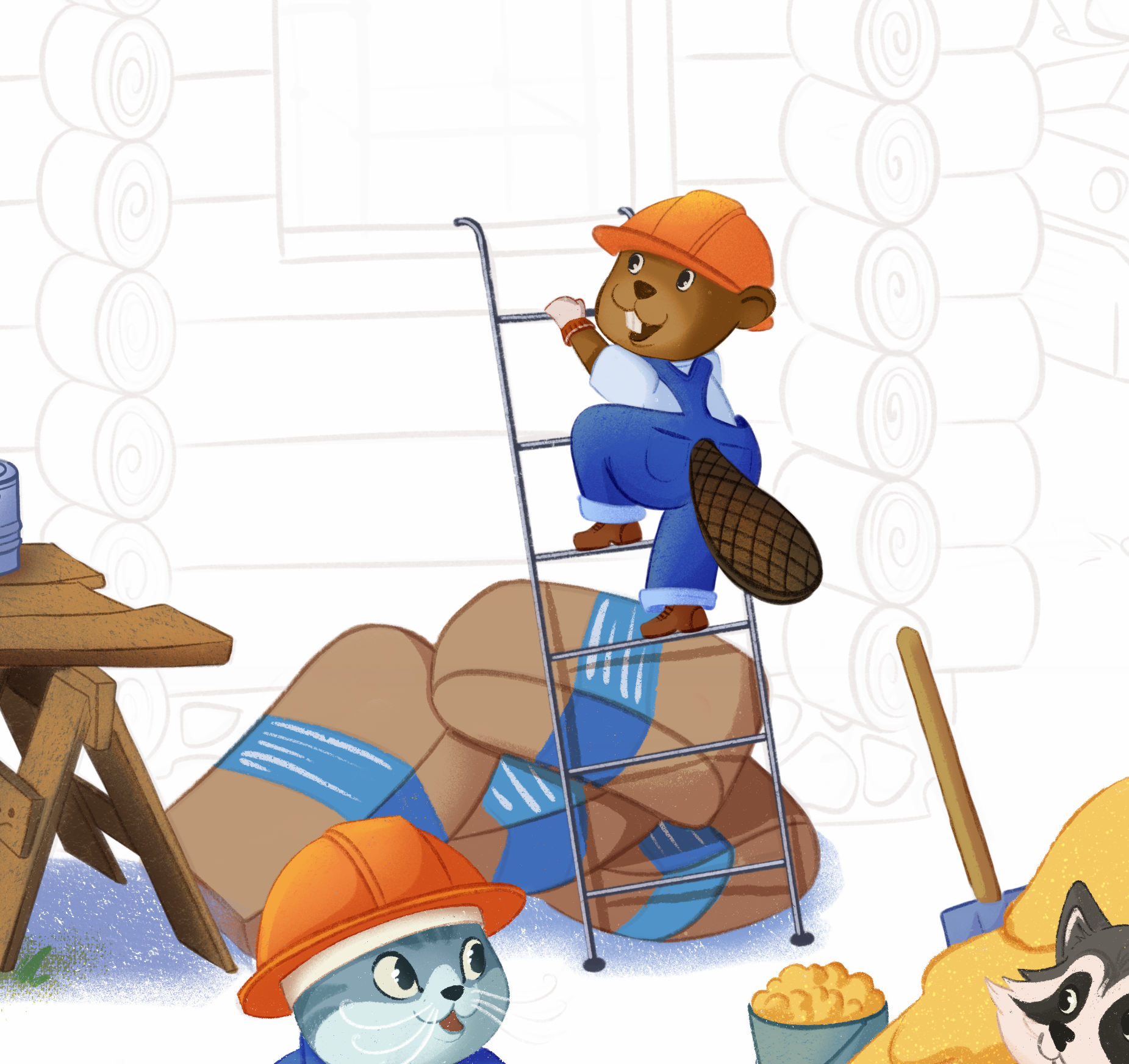 Бобр ползет по лестнице