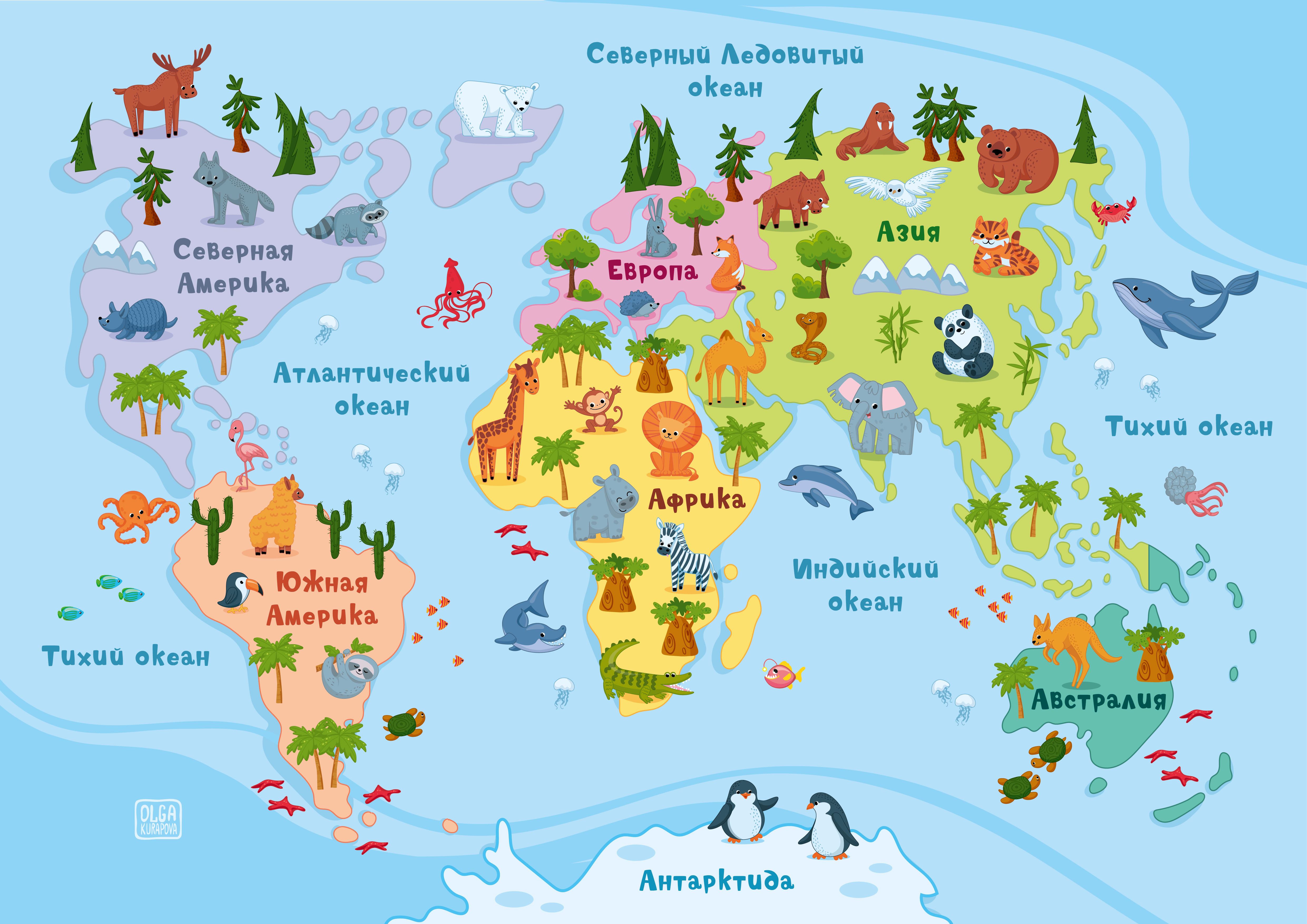 Иллюстрация карты мира для изучения животных детьми