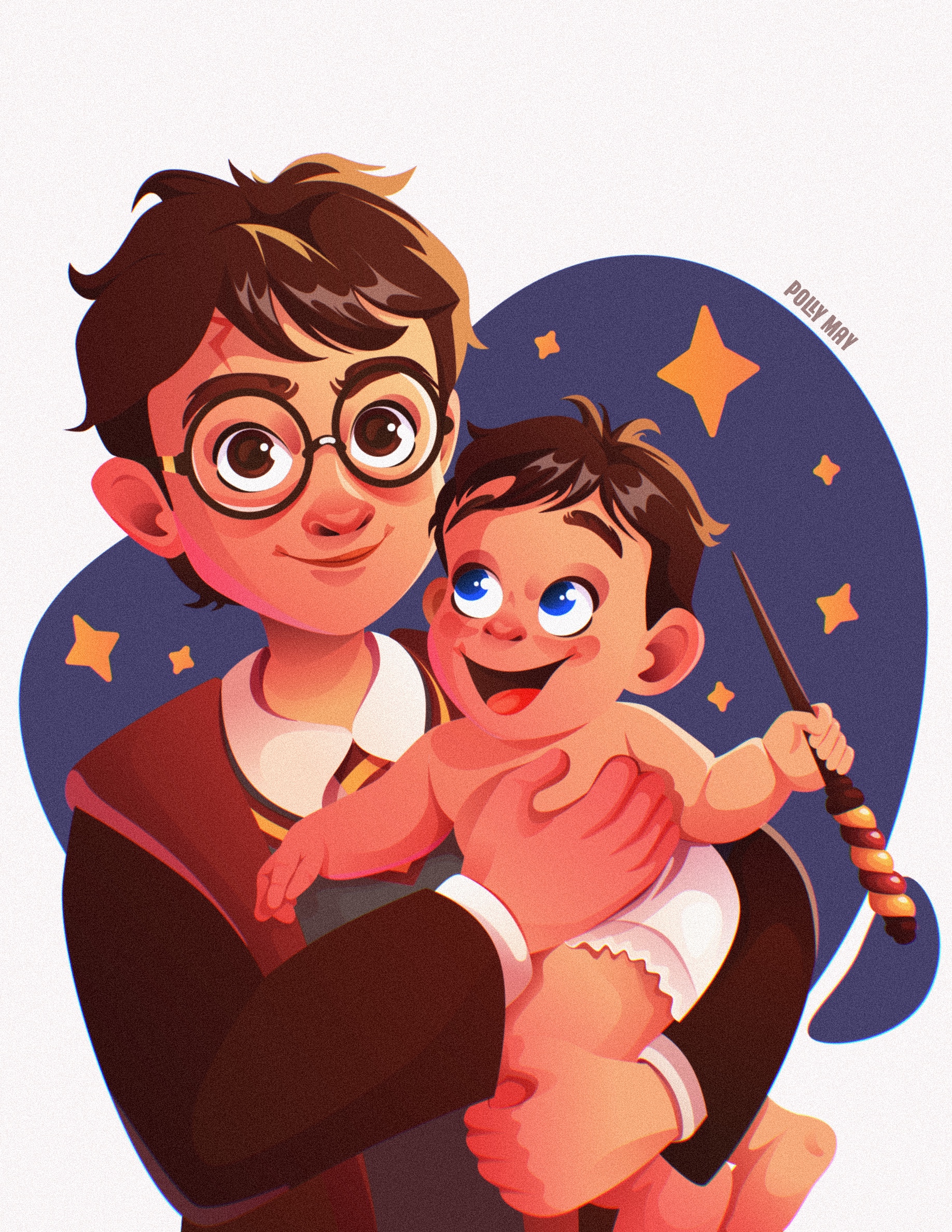 Векторная иллюстрация с Гарри Поттером и малышом. Векторная графика. Персонажи. Реклама подгузников для малышей