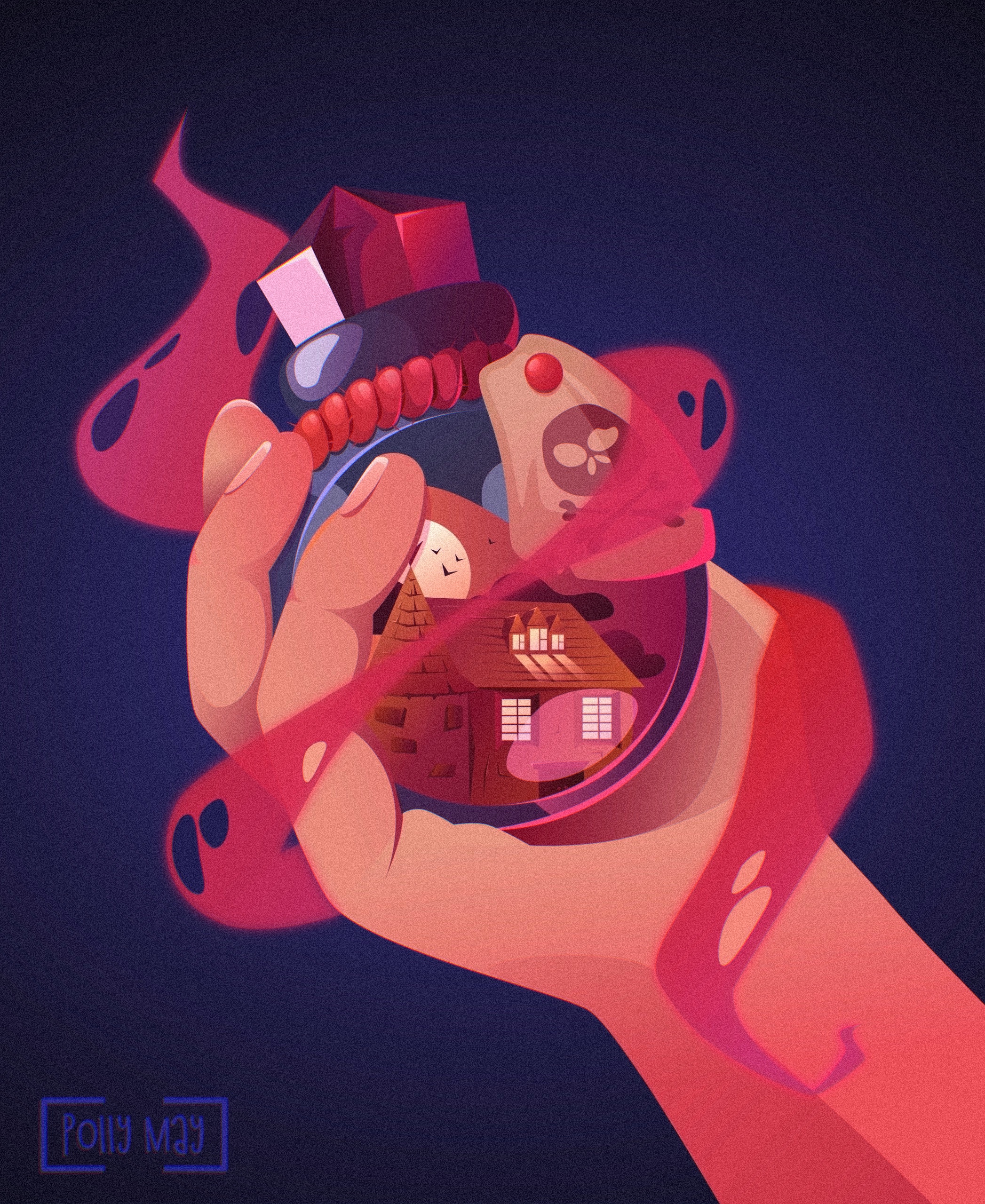 Векторая иллюстация для обложки настольной игры по мотивам Агаты Кристи. В загадочной дома кто-то убил хозяина прямо посреди шумной вечеринки