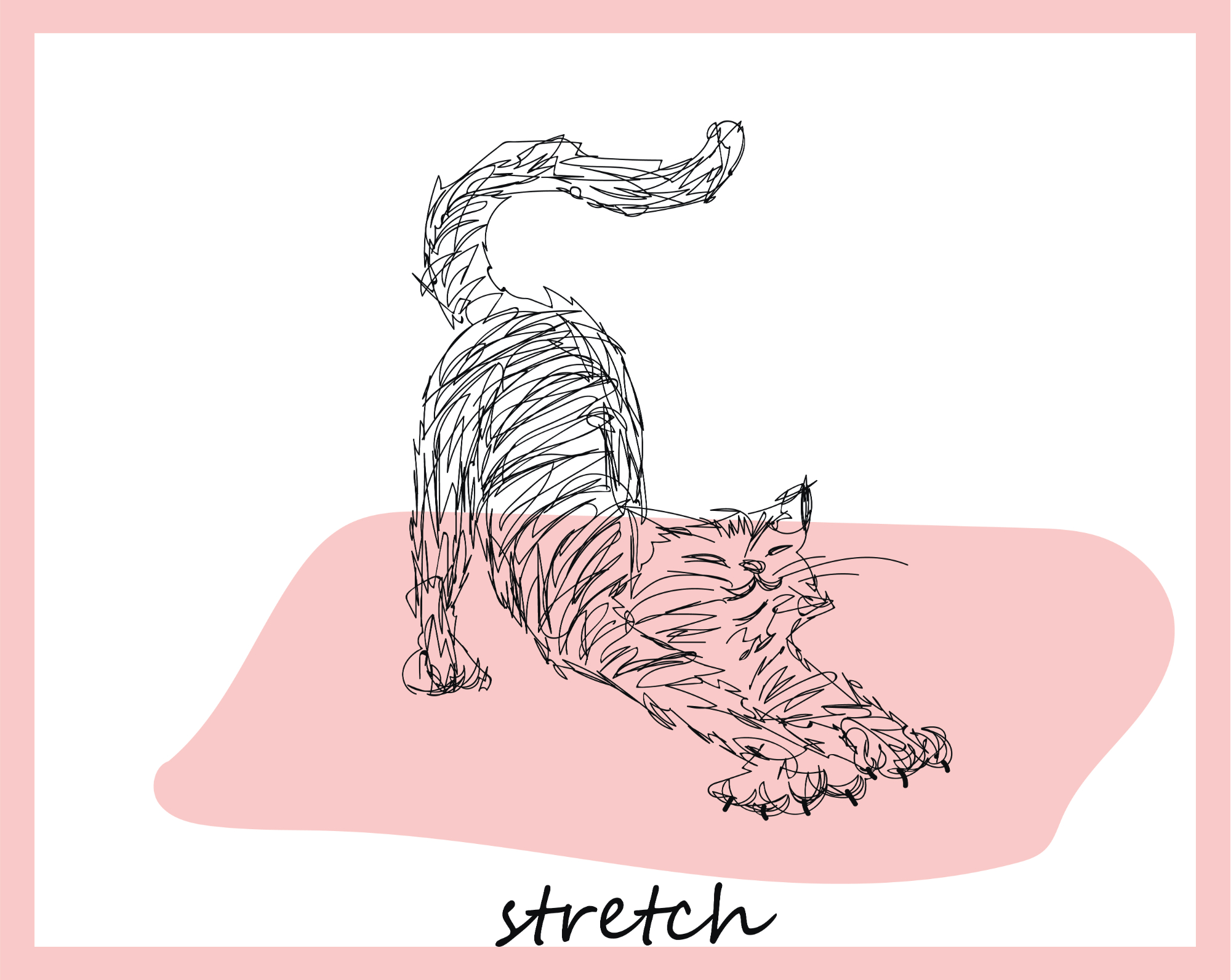 каракули милый кот потягивается на розовом ковре