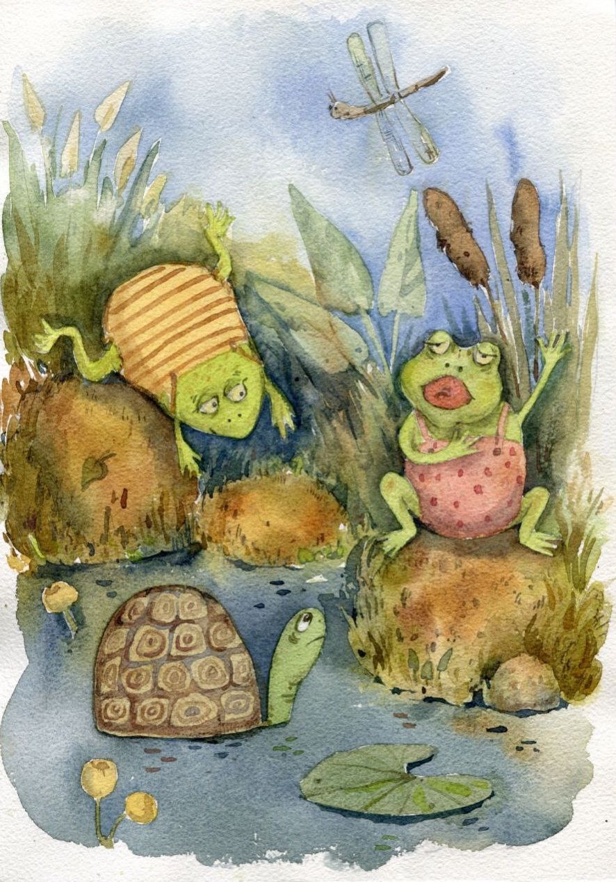"В одном пруду жили лягушка, жаба и черепаха..."