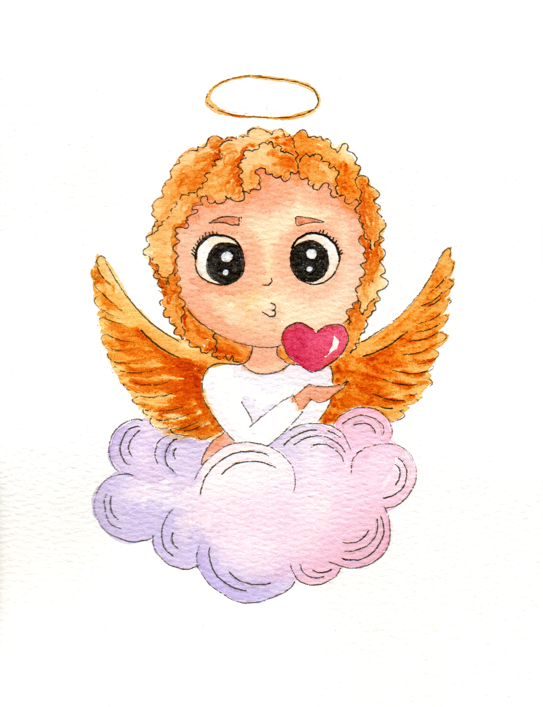 Акварельный скетч, персонаж ангел