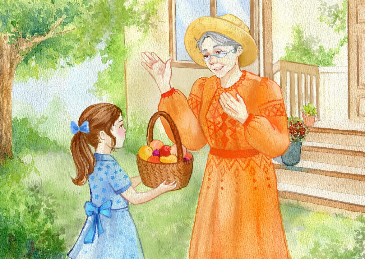 Бабушка и внучка с фруктами