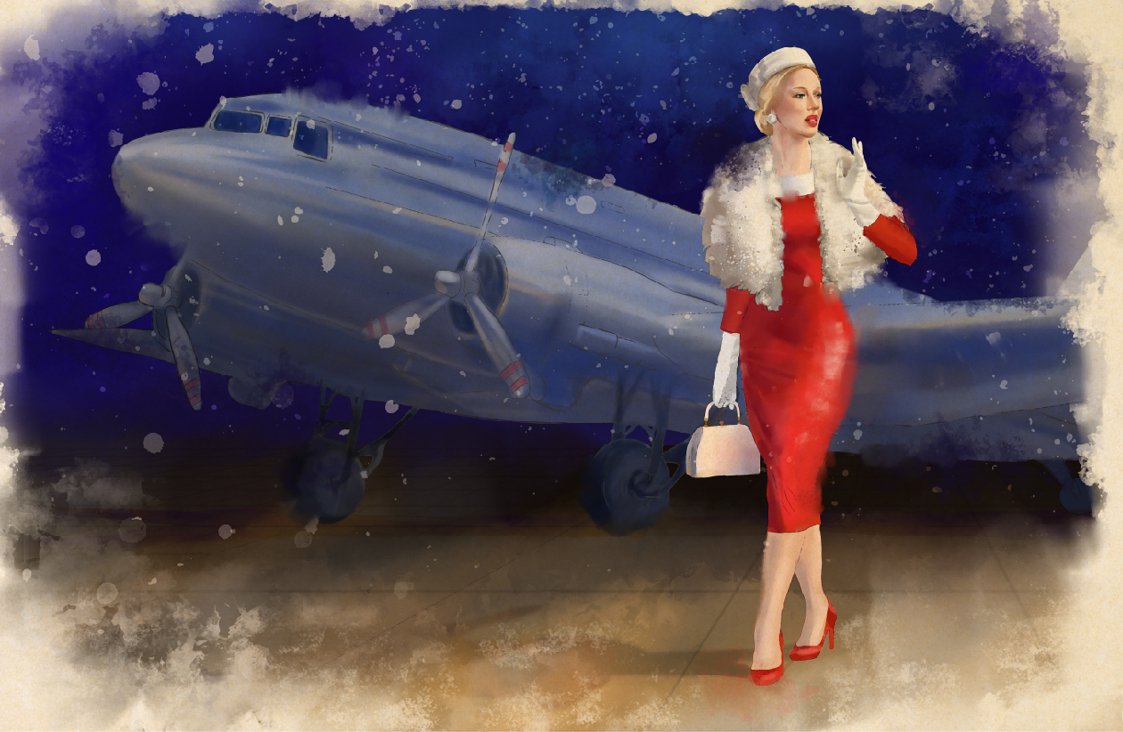 Девушка на аэродроме. Зима