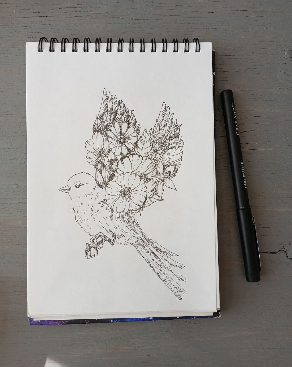 Птичка с цветами на крыльях