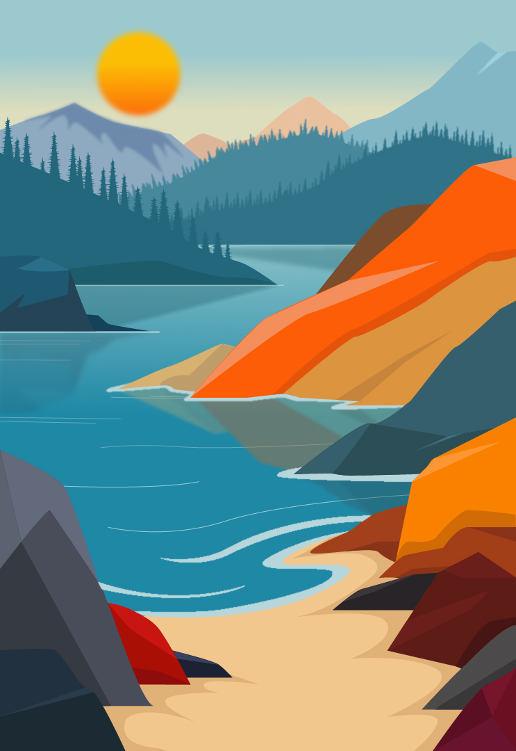 Пейзаж отрисован в Adobe Illustrator