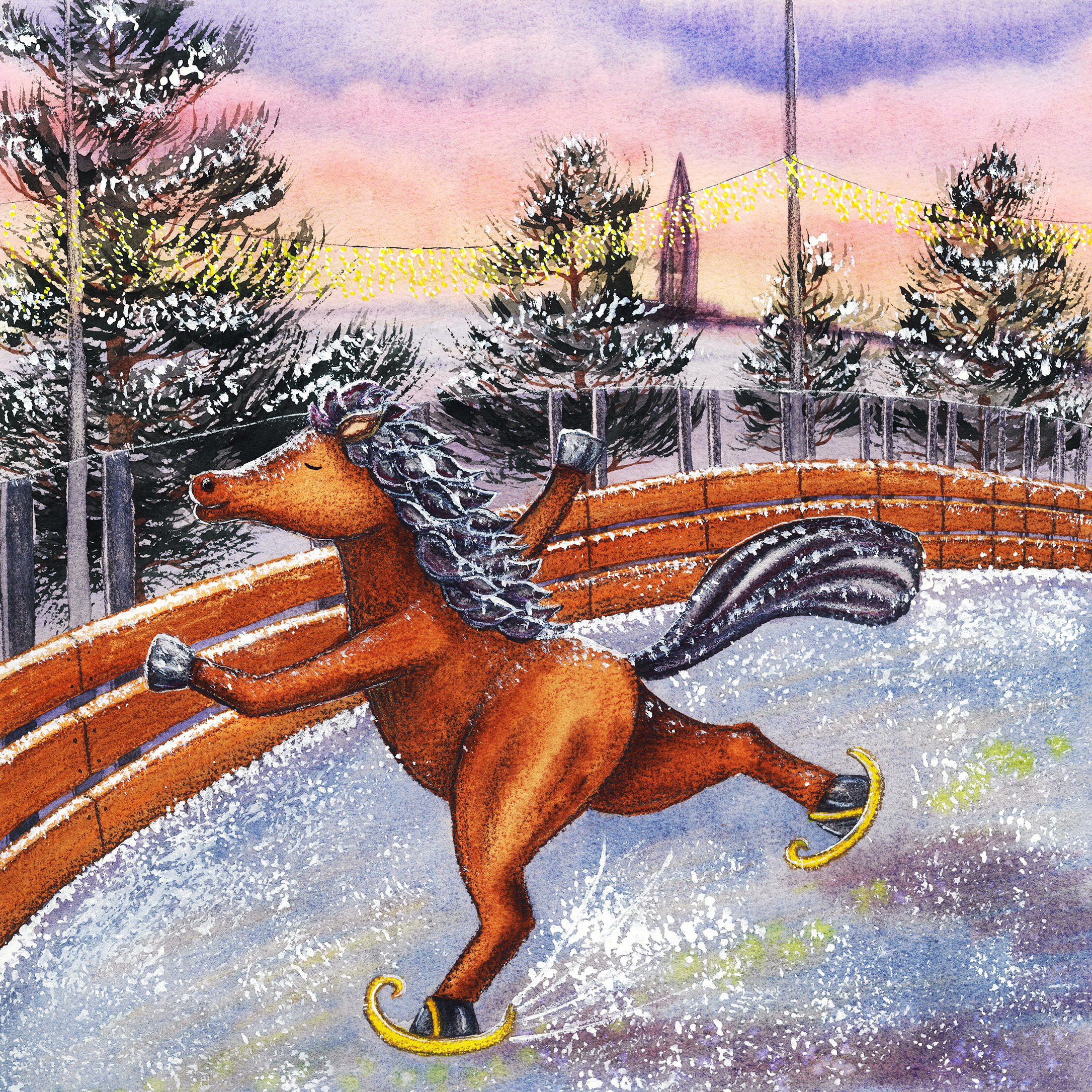 Зимний каток | Акварельный календарь с персонажем