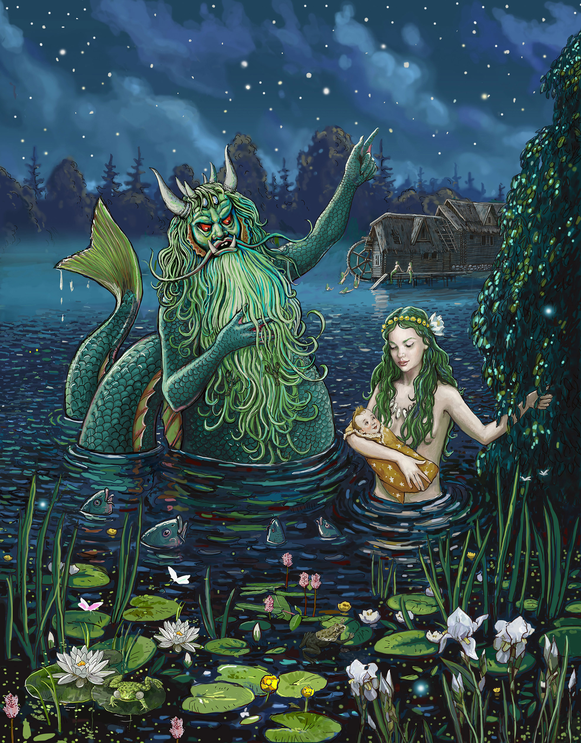Водяной ругает русалку Таисью, у него вообще скверный характер...)) Книга Евгения Бедарева "Успеть до восхода солнца. Все права принадлежат заказчику.