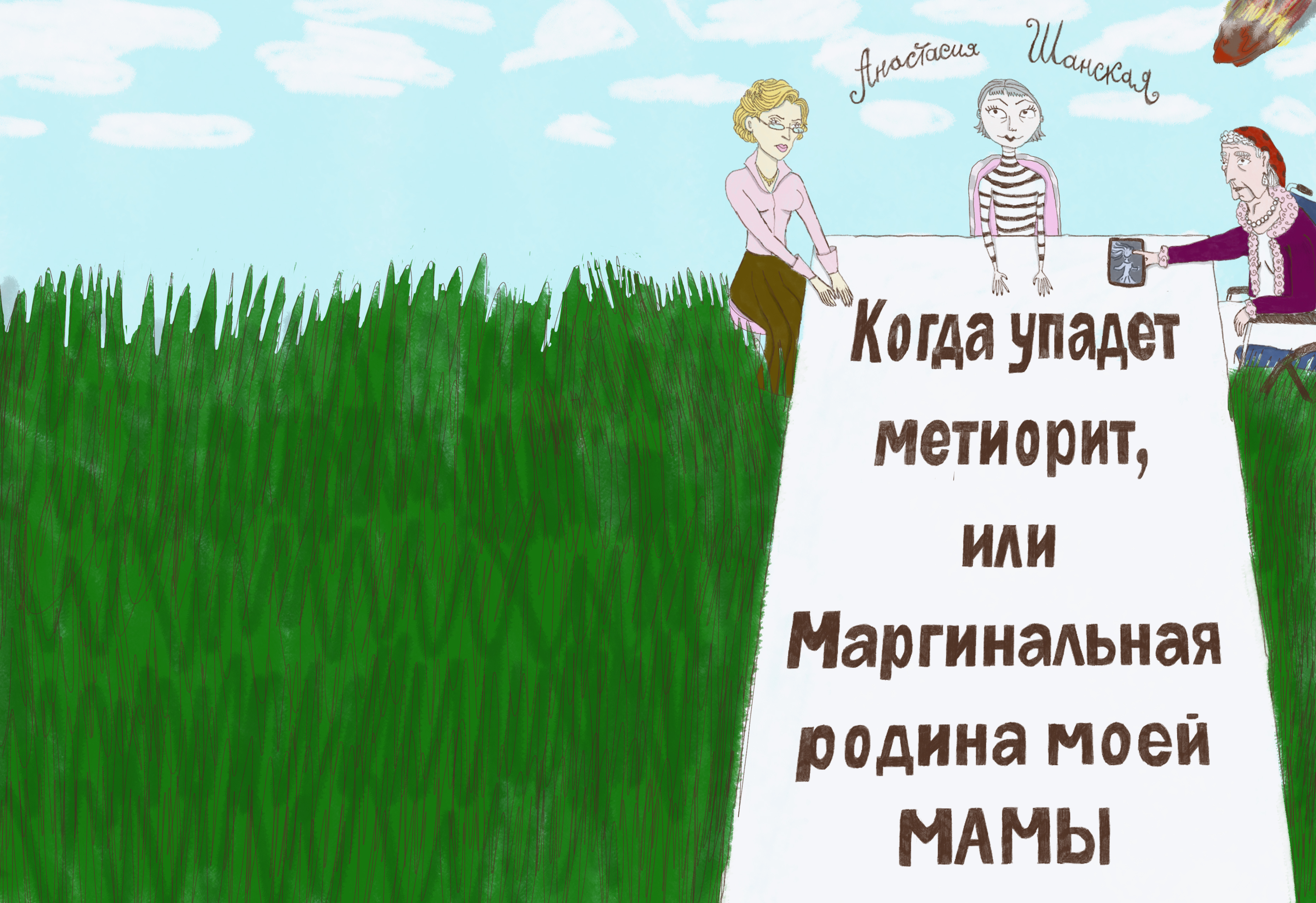 Конкурс иллюстрированных обложек для книг издательства "Белая Ворона" IV сезон Книга: Когда упадет метеорит, или Маргинальная родина моей мамы, автор Анастасия Шанская, художник Илхам Вахриев