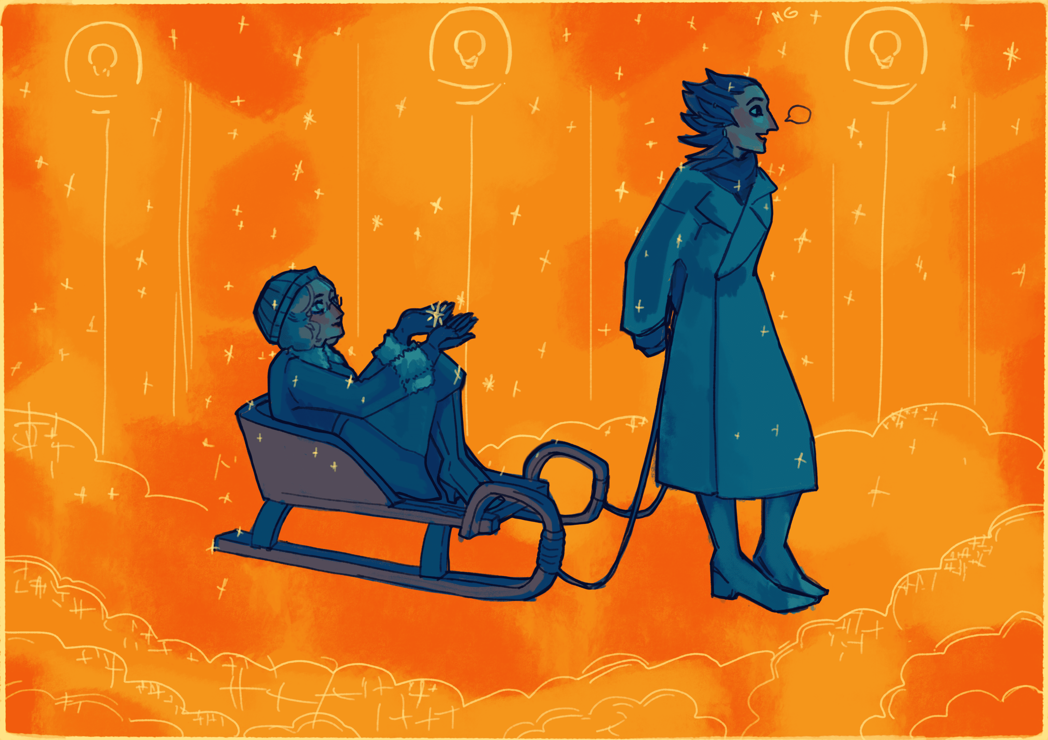 Небольшая зимняя иллюстрация с моими персонажами.