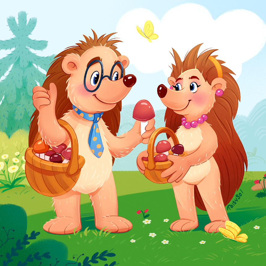 Семья ежат. Иллюстрация для книжки-малышки.