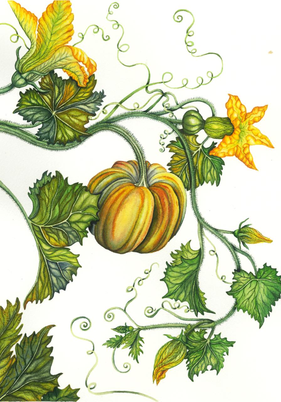 Фрагмент акварельной работы из серии "Тыквы". Триптих был выполнен на заказ для размещения в летней гостиной.