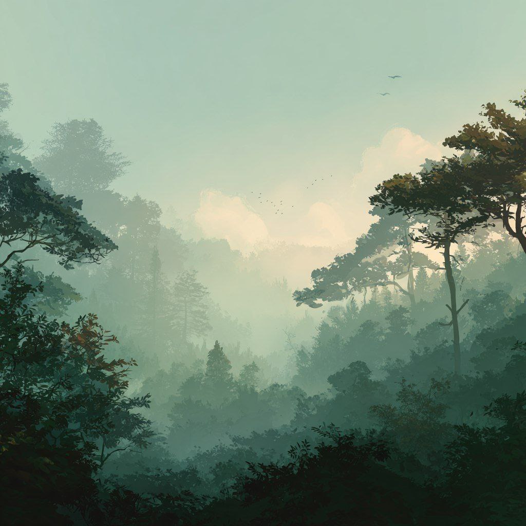 туман ранним утром в горном лесу