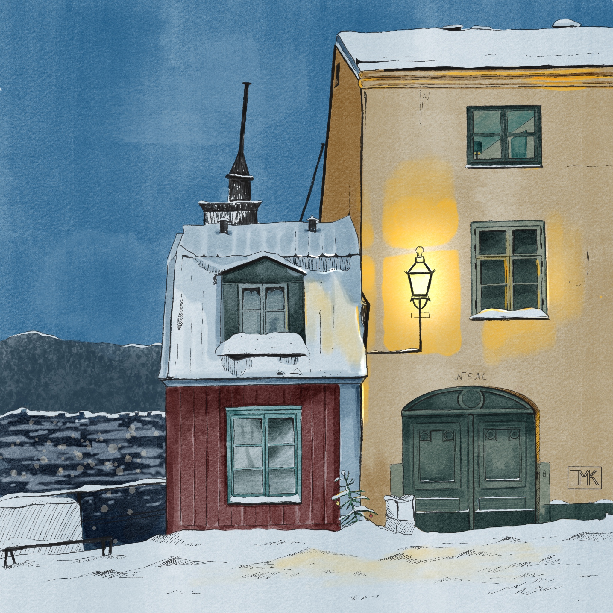 Небольшая зарисовка заснеженной улицы