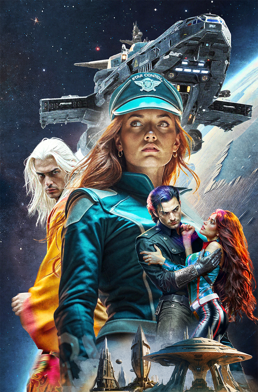 Эскиз обложки , к роману в жанре космической оперы 1980-х г., 2025 г. Сделано не без помощи AI. Продаётся /A sketch of the cover, for a novel in the genre of the space opera of the 1980s