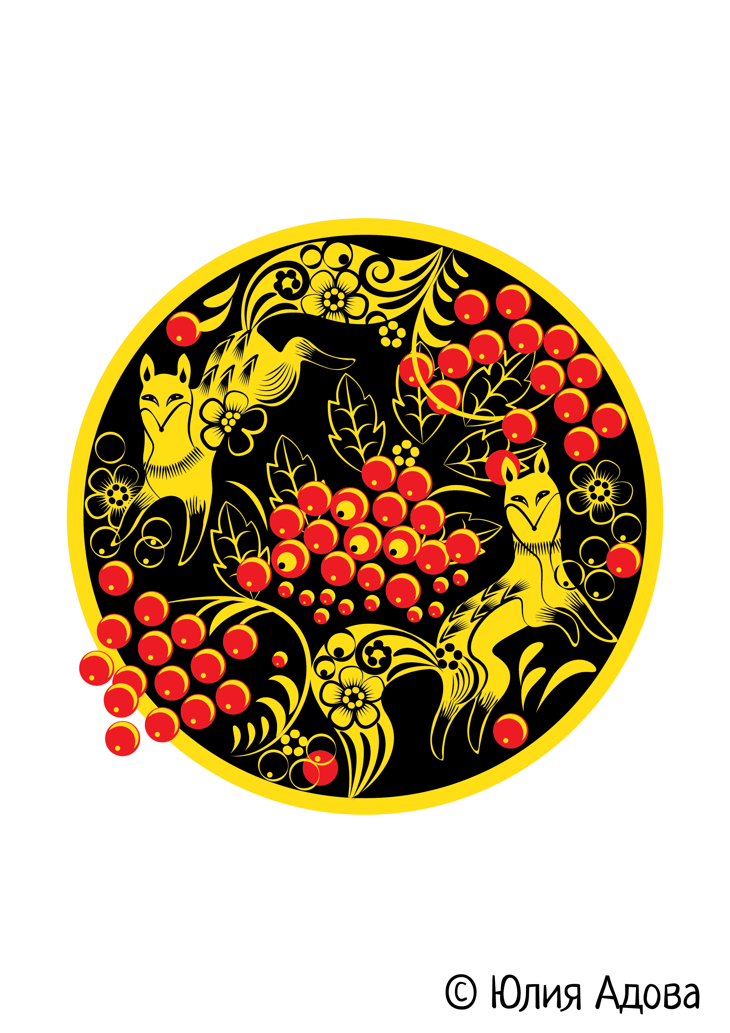 Лисички в стиле хохлома
