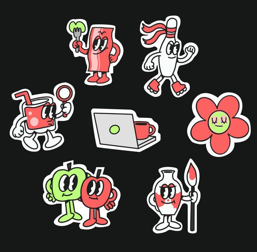 Иллюстрации иконок для приложения FUSS. FUSS — медиа про интересные места и новые знакомства в Лондоне