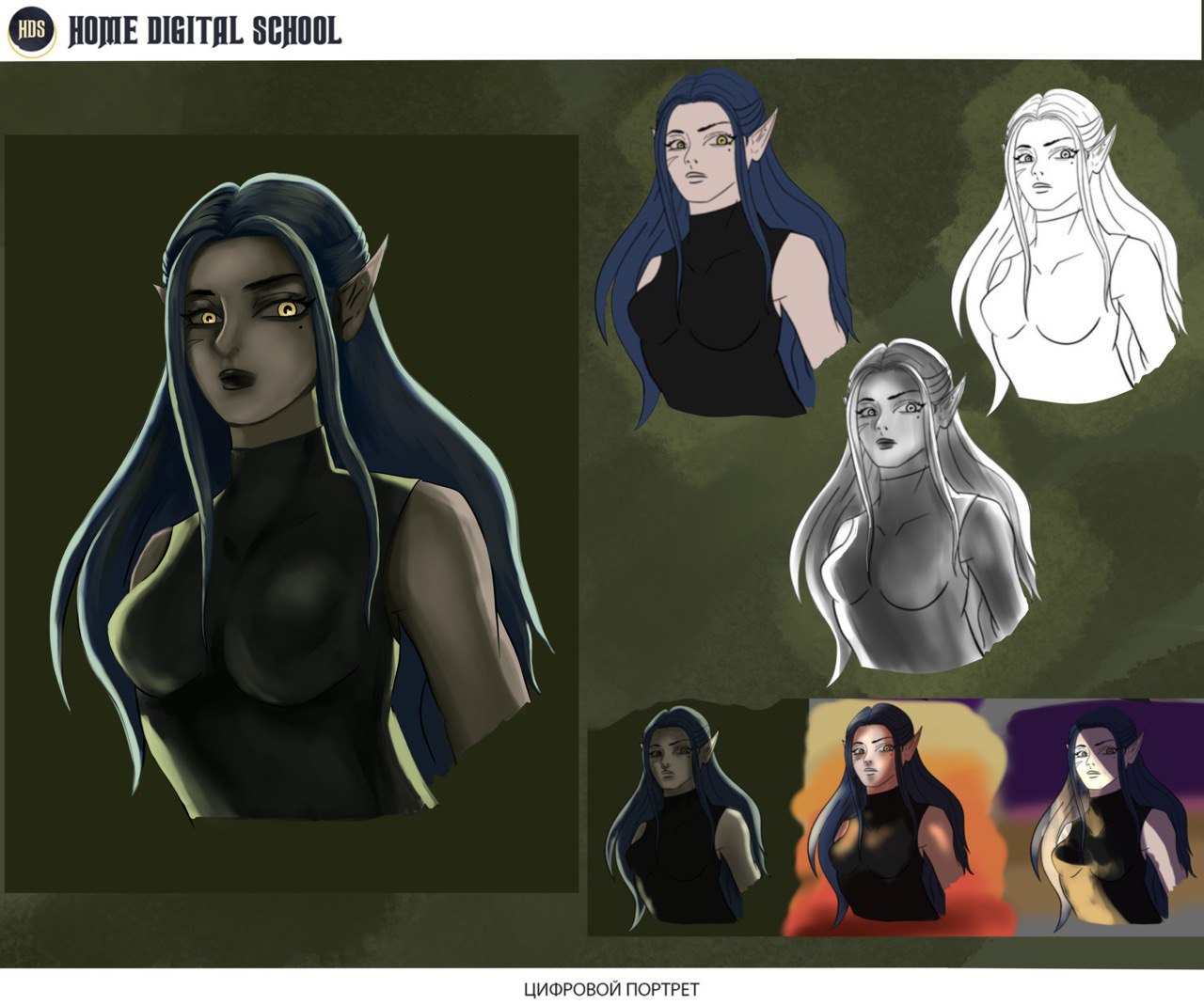 Дипломная работа по курсу "Портрет" в онлайн школен Home Digital School в стиле комиксов Марвел и ДС
