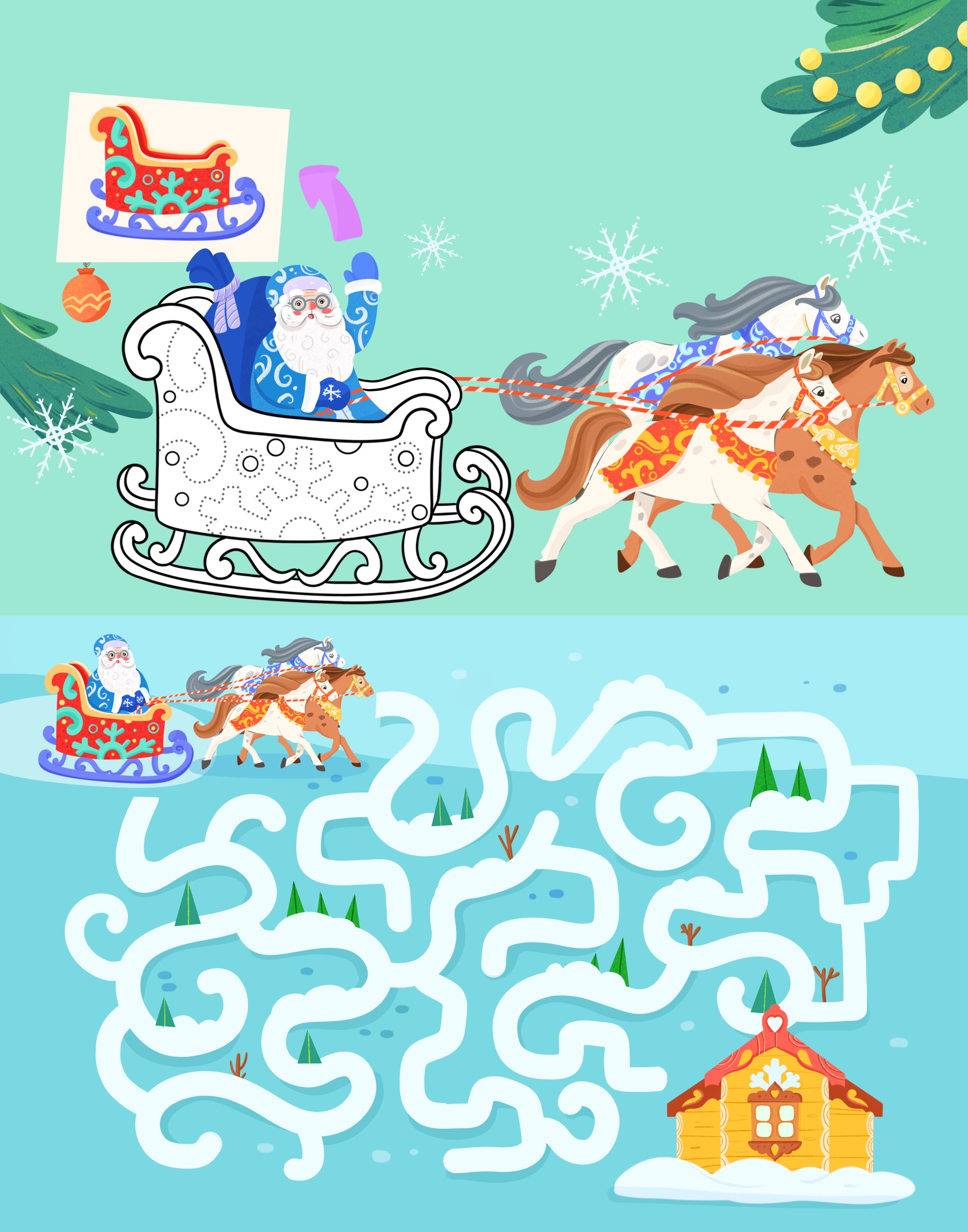 Новогоднее активити для малышей «Помоги добраться Деду Морозу до его терема»