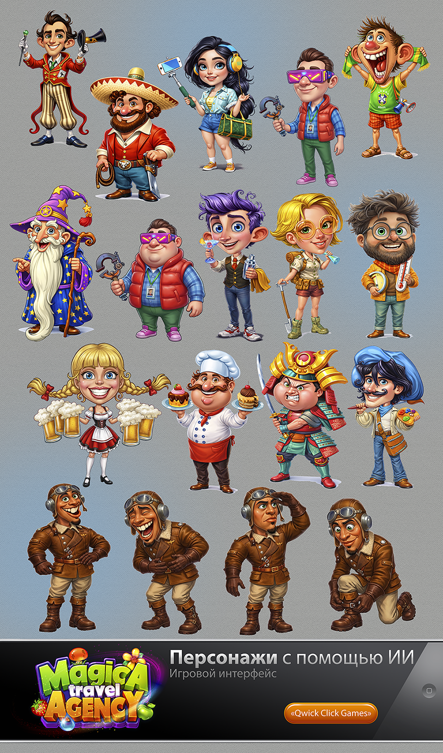 ПЕРСОНАЖИ4. Игровой арт для мобильной игры Magica Travel Agency (Match-3)