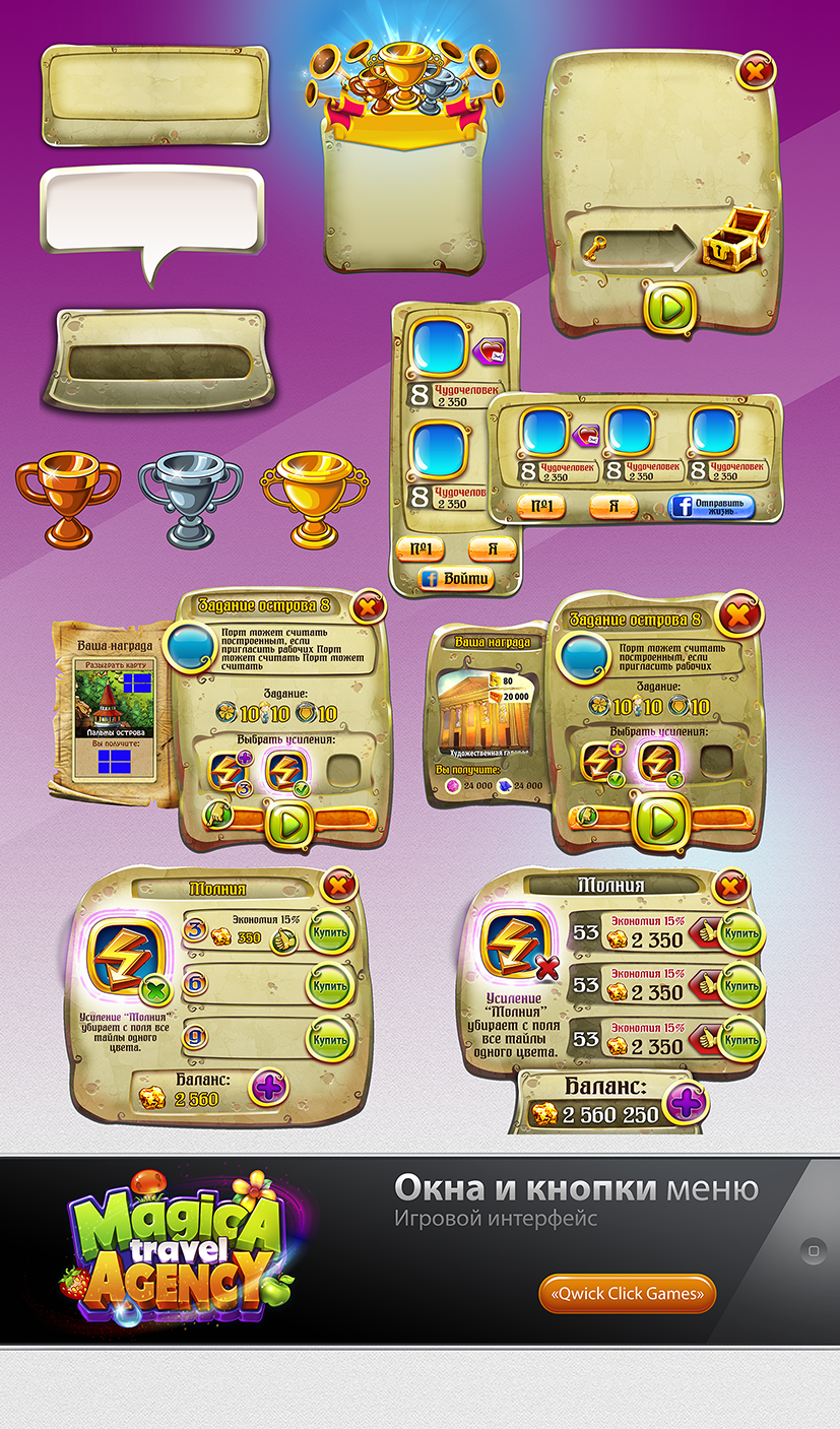 ИНТЕРФЕЙС1. Игровой арт для мобильной игры Magica Travel Agency (Match-3)