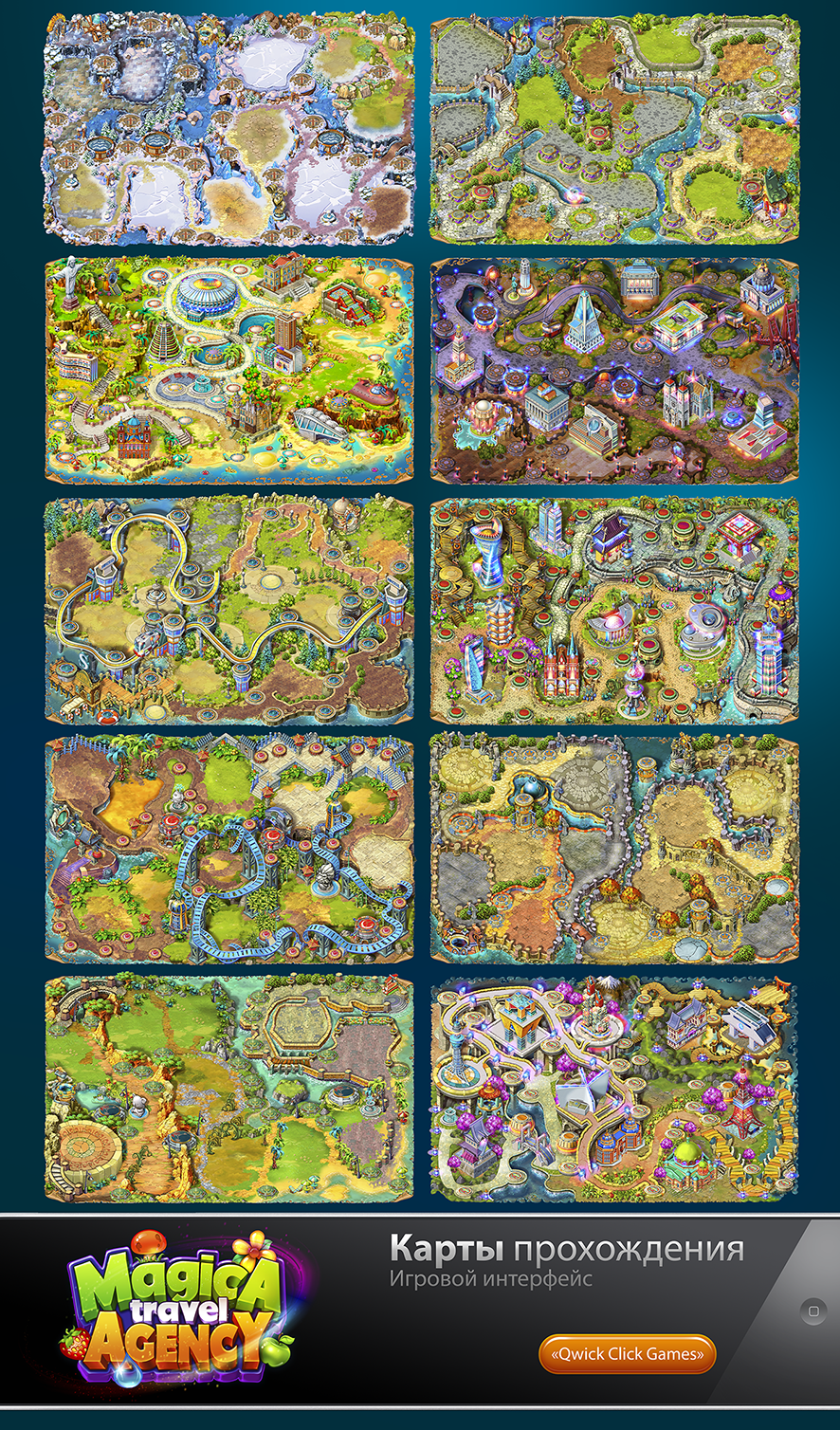 КАРТЫ4. Игровой арт для мобильной игры Magica Travel Agency (Match-3)
