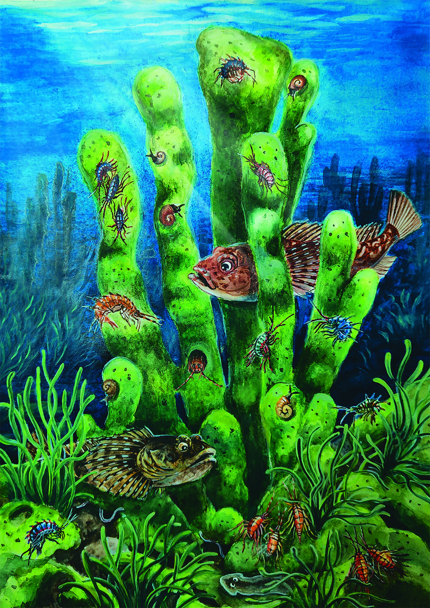 Иллюстрация к книге "Здравствуй, озеро Байкал!" Байкальская губка и её обитатели.