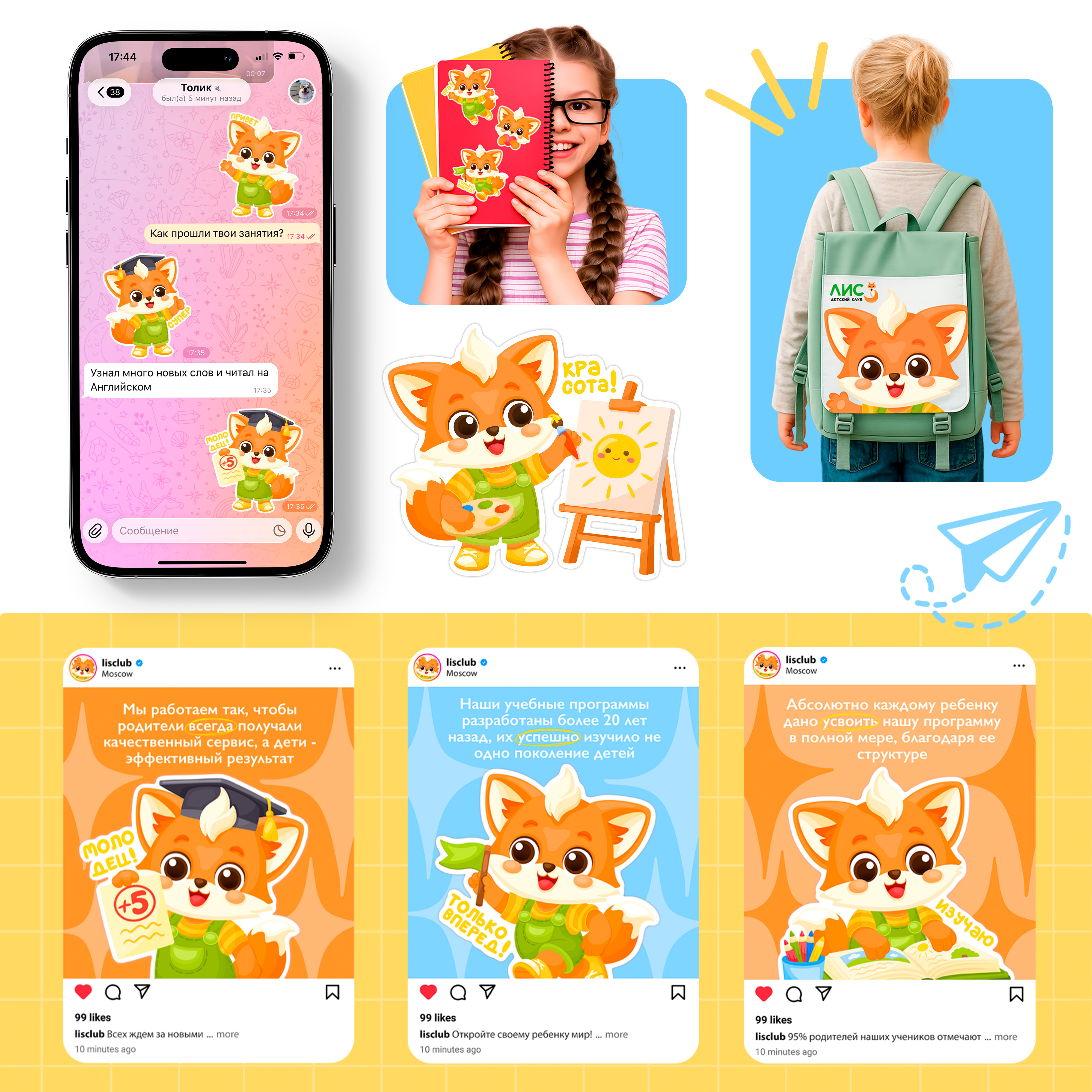 Это проект, посвящен разработке стикеров и маскота для детского образовательного клуба «Лис»