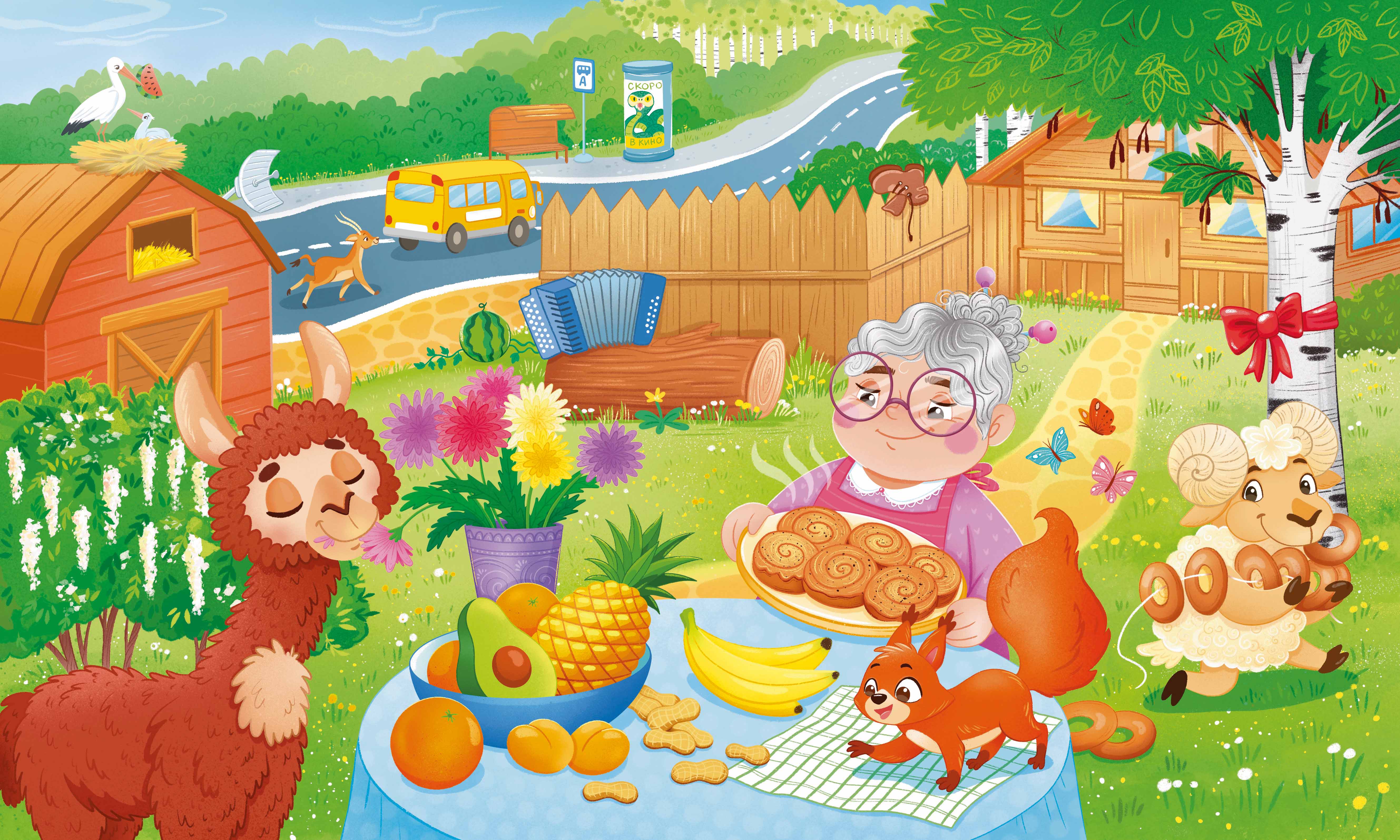 Иллюстрация для детской книги, тестовое задание для детского издательства, разворот.