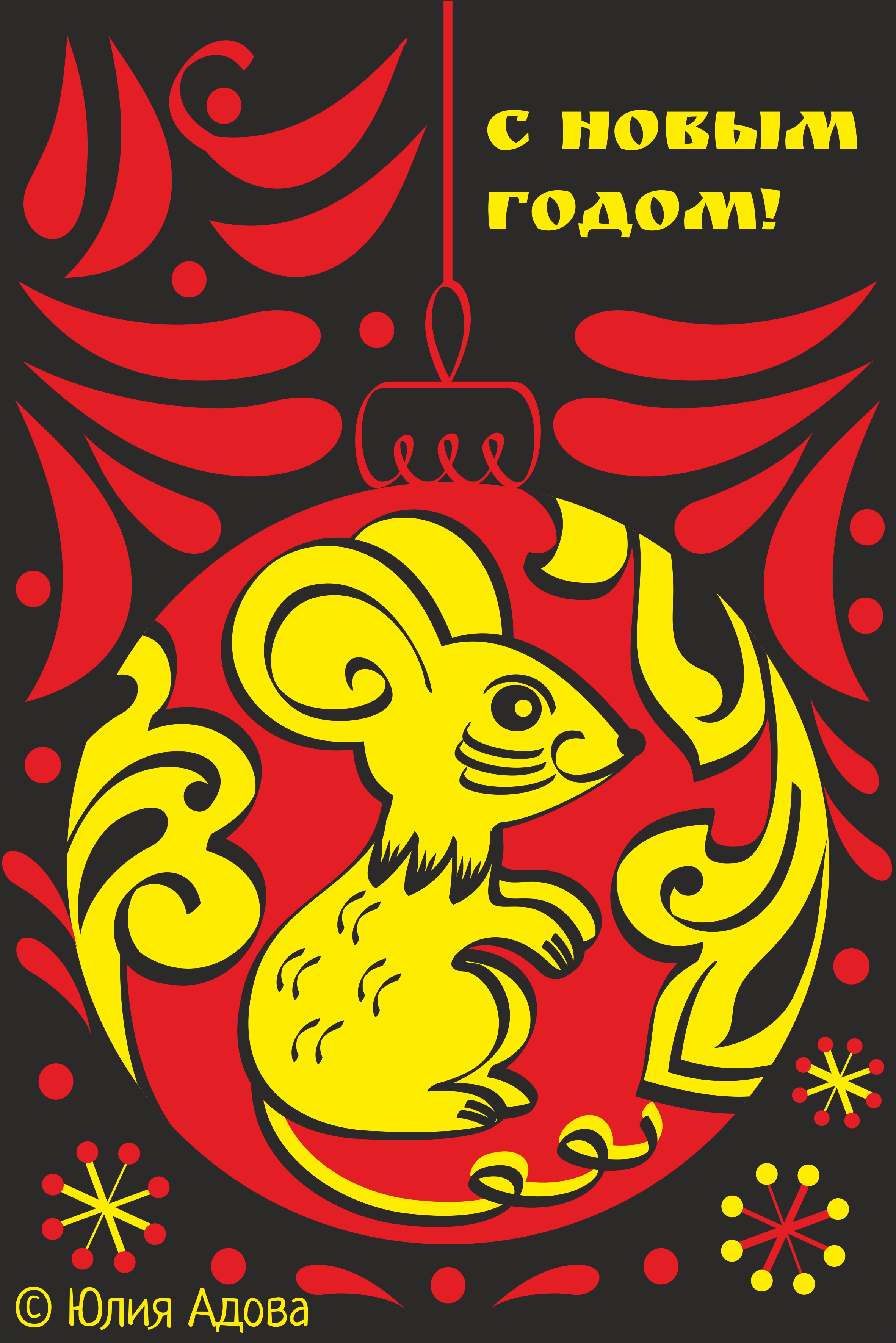 Новогодняя открытка с символом года в стиле хохломы